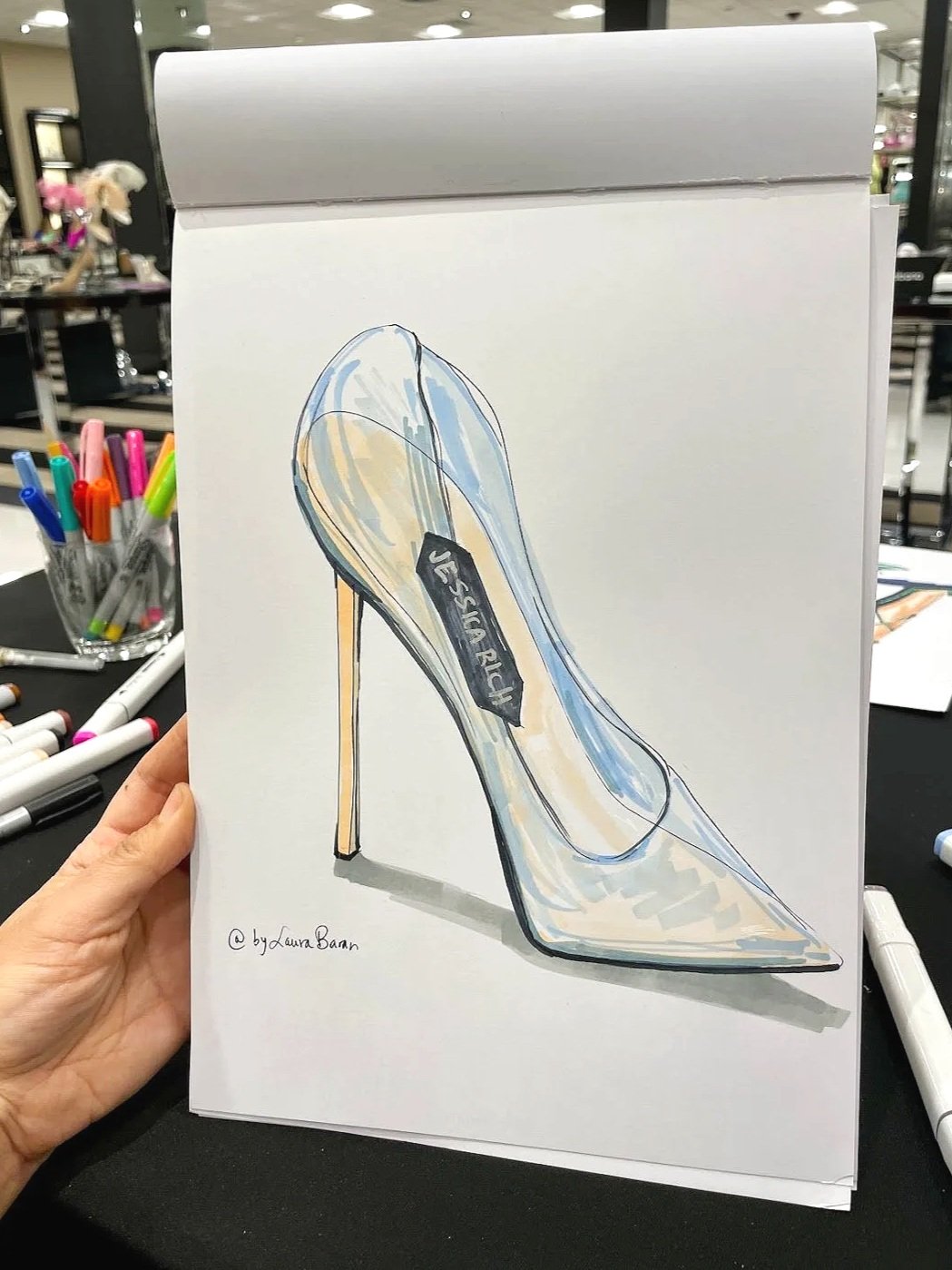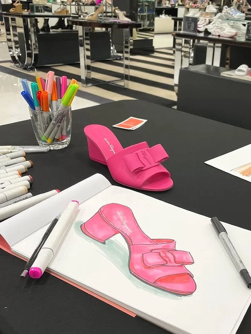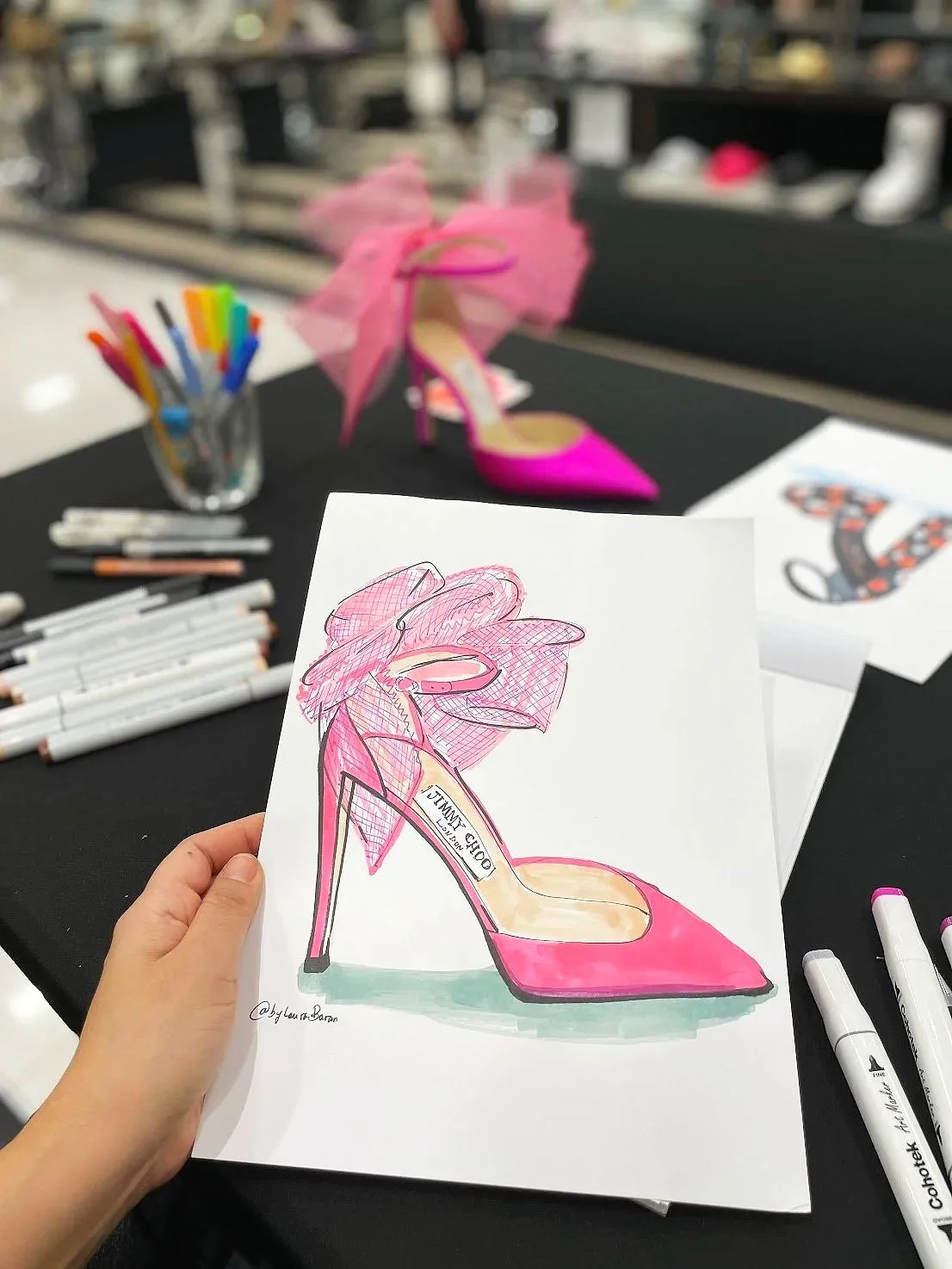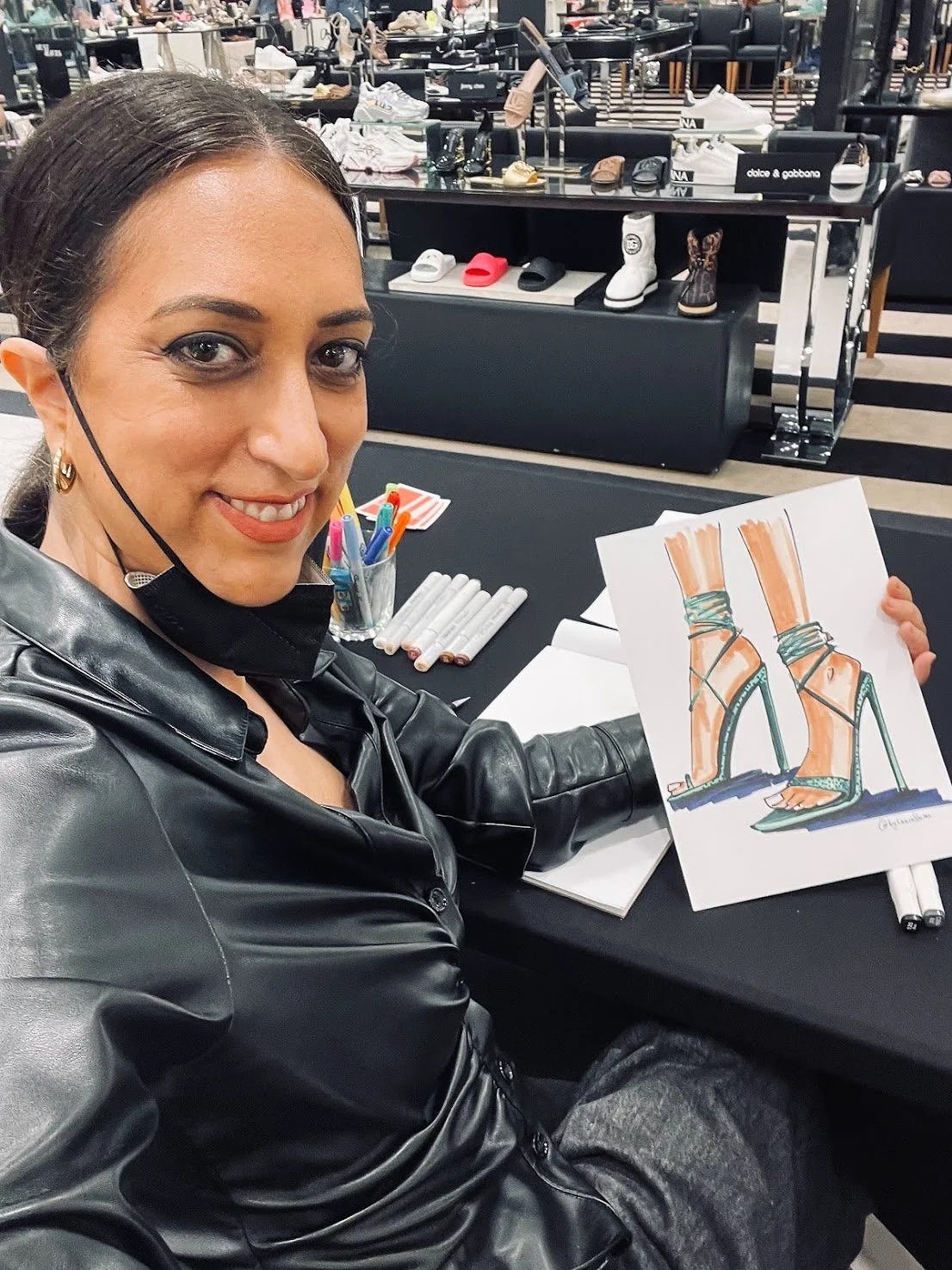 Live sketching shoe illustrations by Laura Baran at Bloomingdale’s in Huntington, NY. March 19, 2022