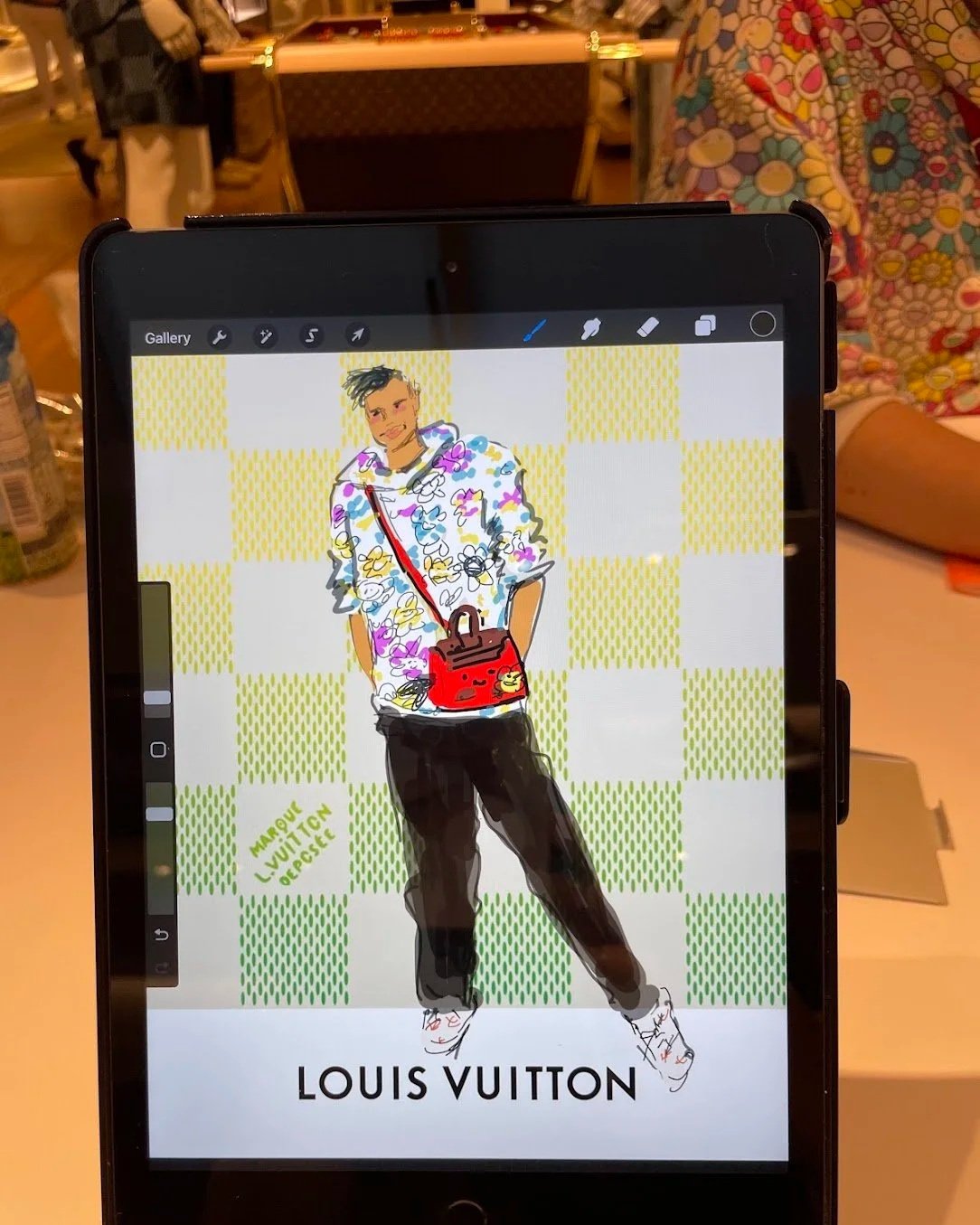 For major brands like Louis Vuitton, I sketch digital portraits for guests using Procreate on iPad.