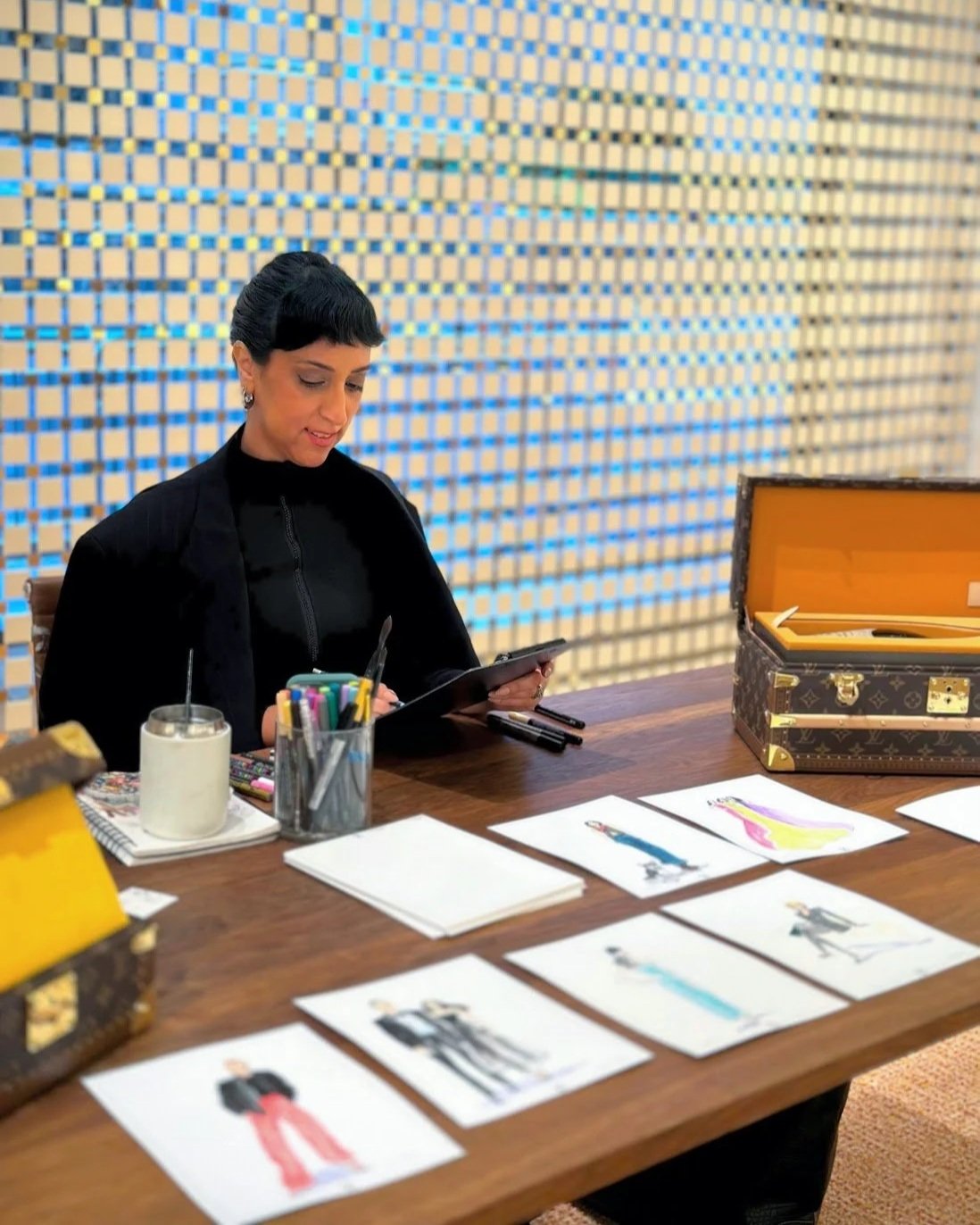 Here I am sketching for guests at Louis Vuitton Fifth Avenue.