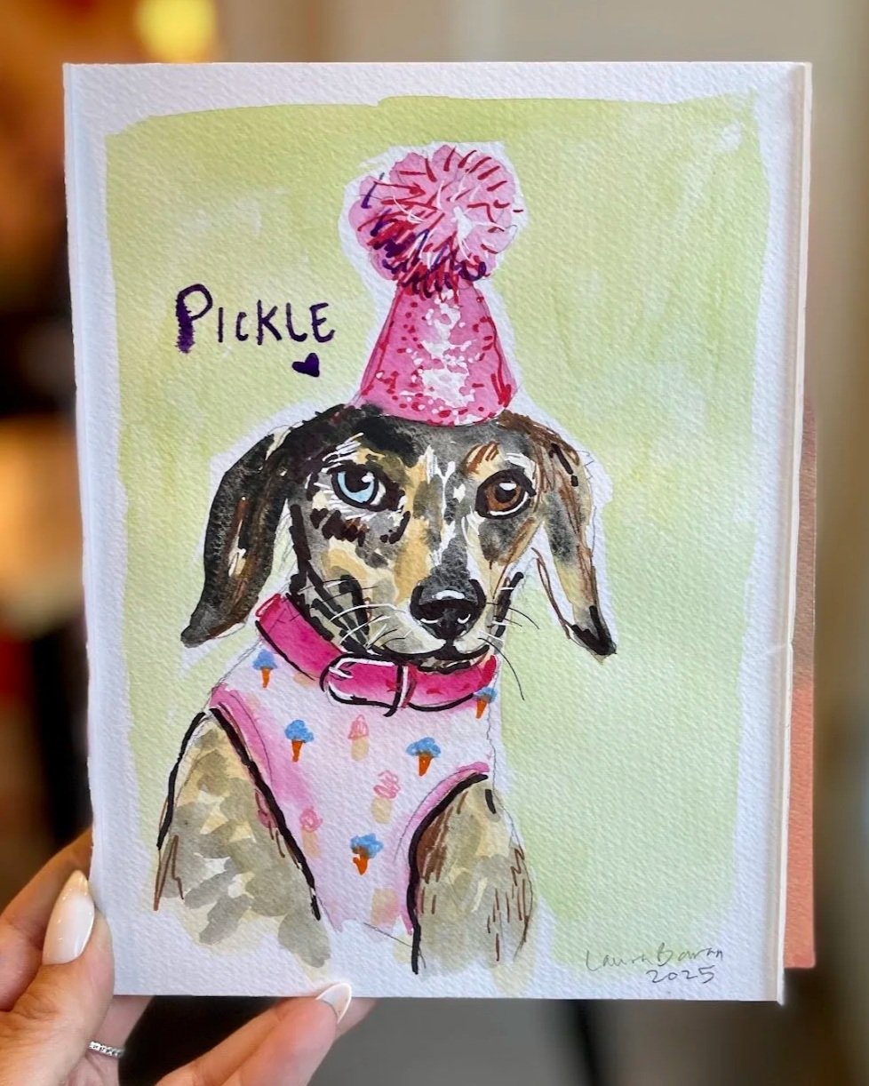 I painted Pickle with watercolor and ink at Boris & Horton, a pet-friendly cafè in the East Village.