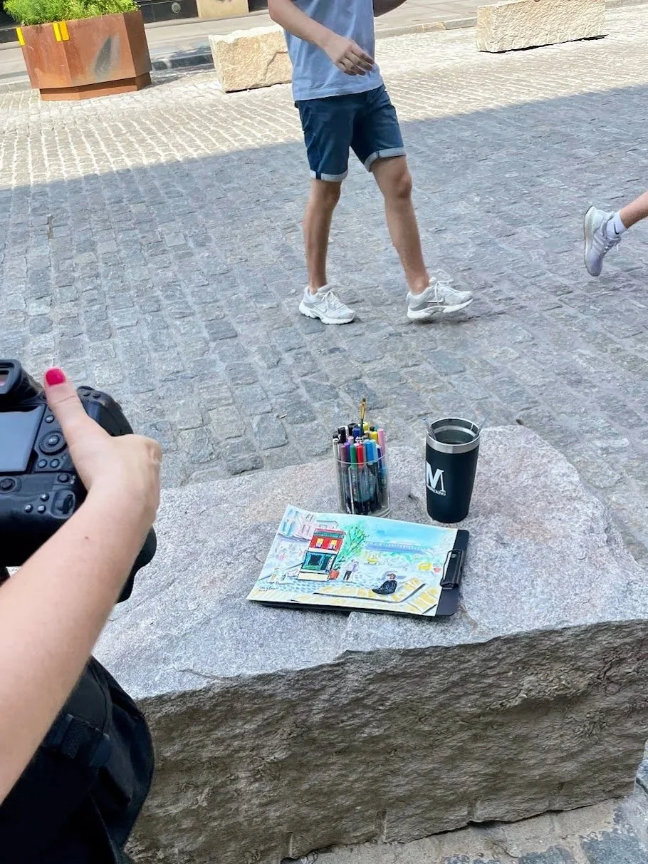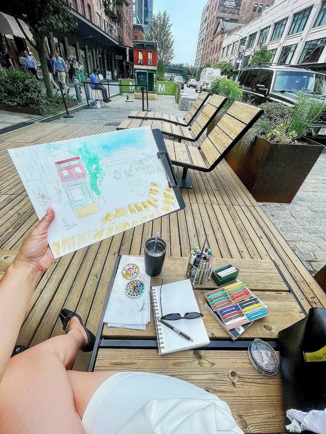 Laura Baran sketched Meatpacking’s new 14th Street Promenade and the “Step Into Hopper” public exhibit, a Whitney Museum x Meatpacking District collaboration on July 12, 2025, New York, NY.