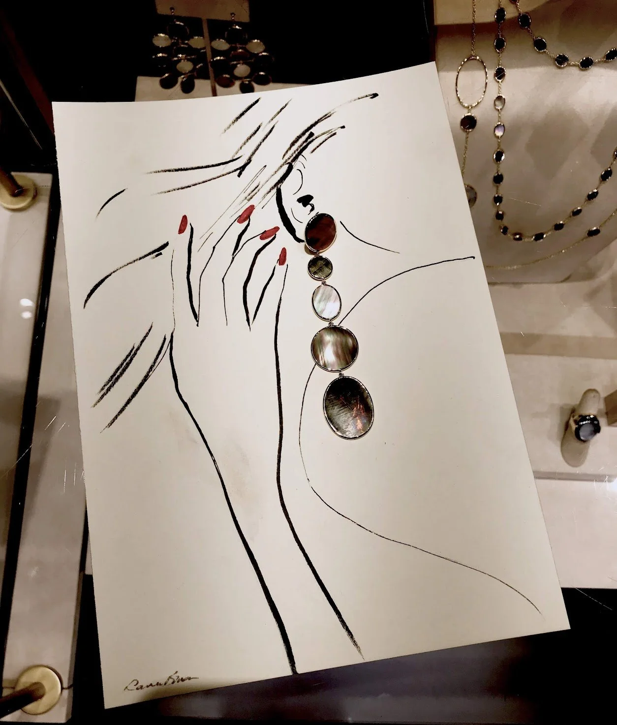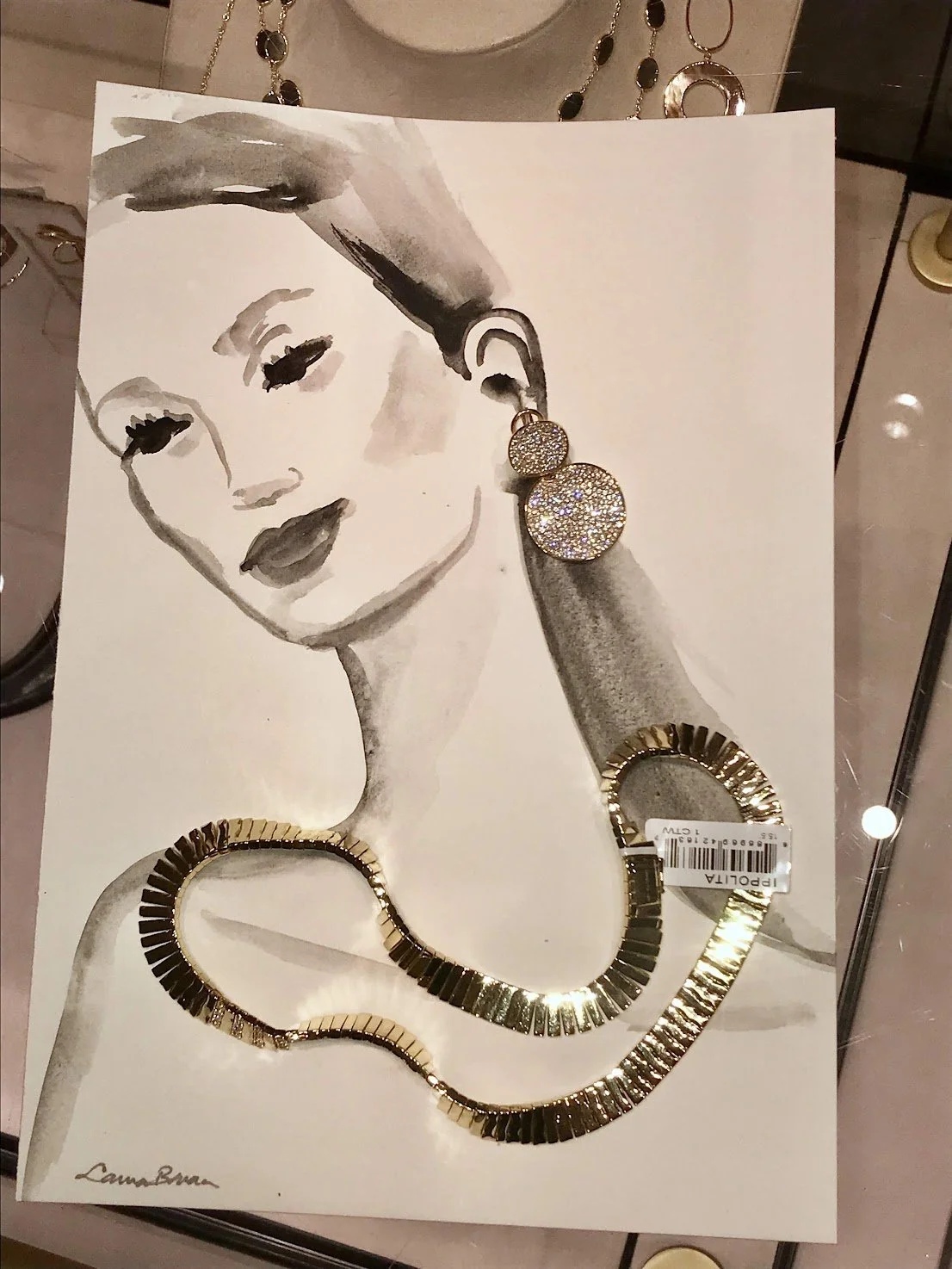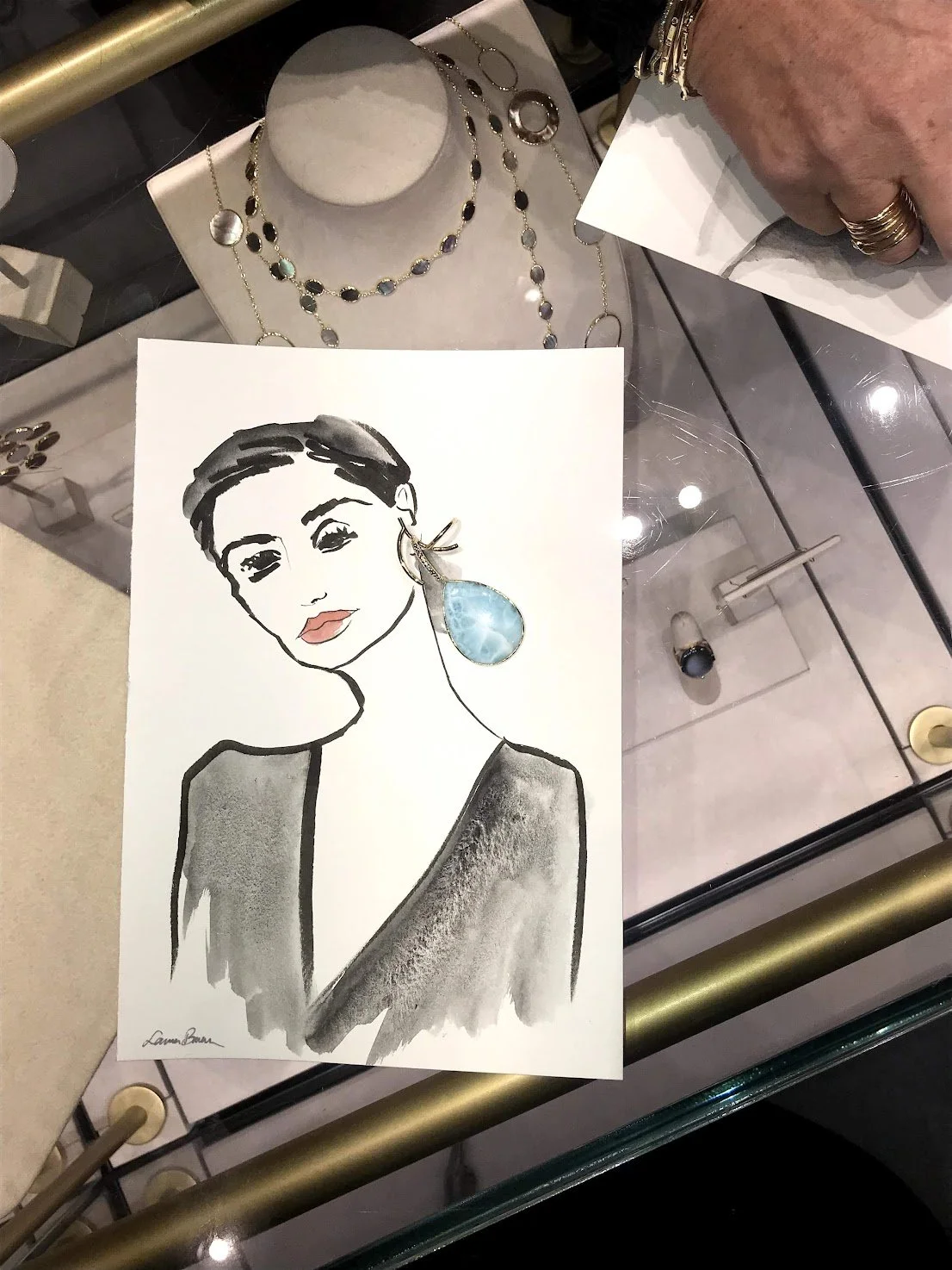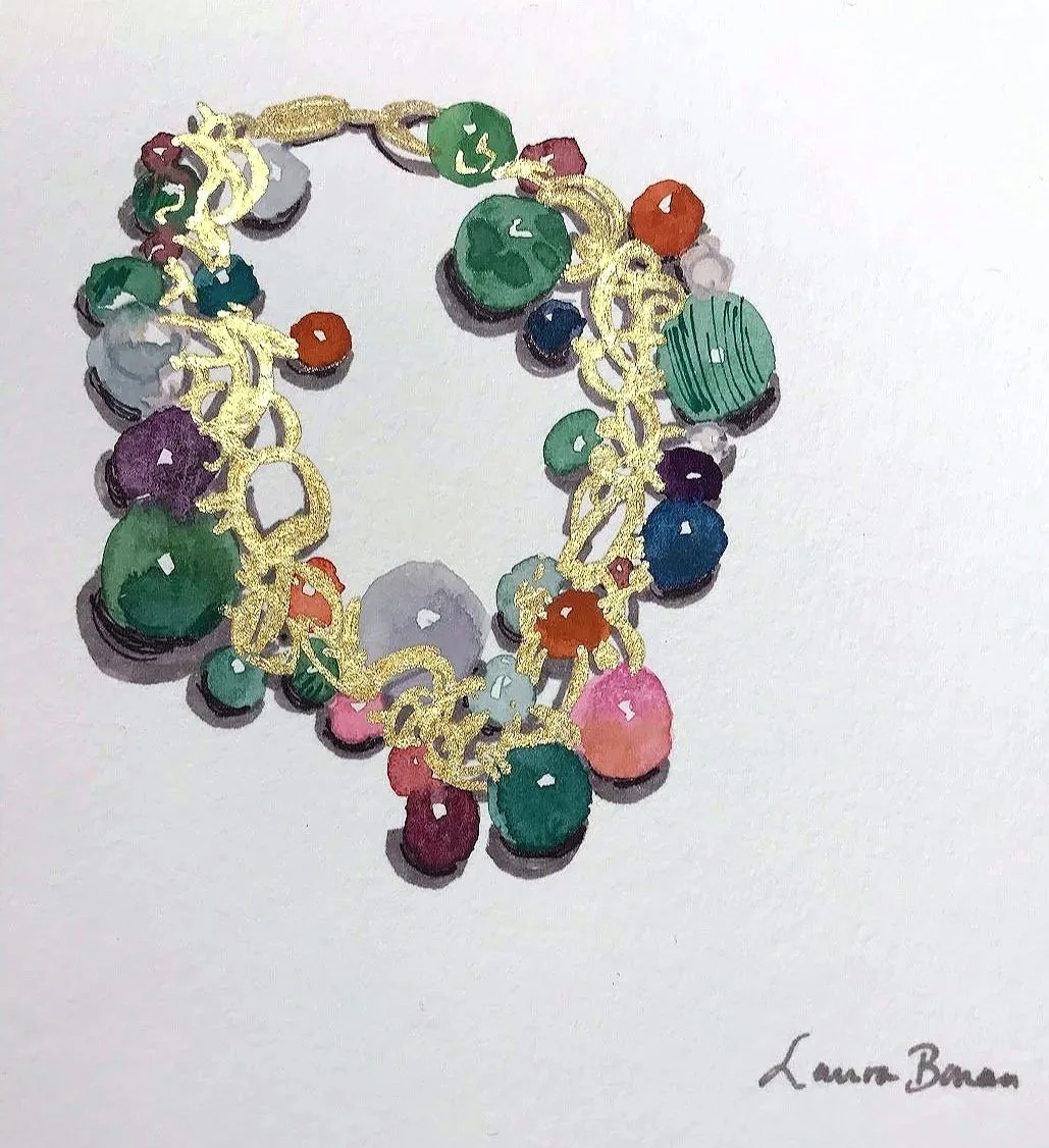 Live sketching jewelry, fashion, and product illustrations by Laura Baran at Ippolita Boutique on Madison Avenue, NYC on December 5, 12, and 19, 2019.