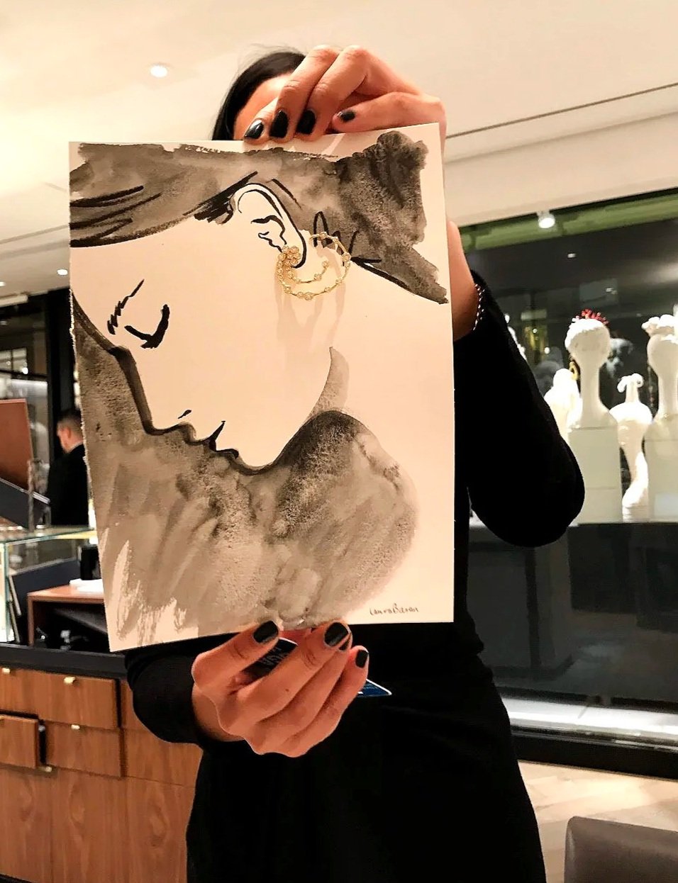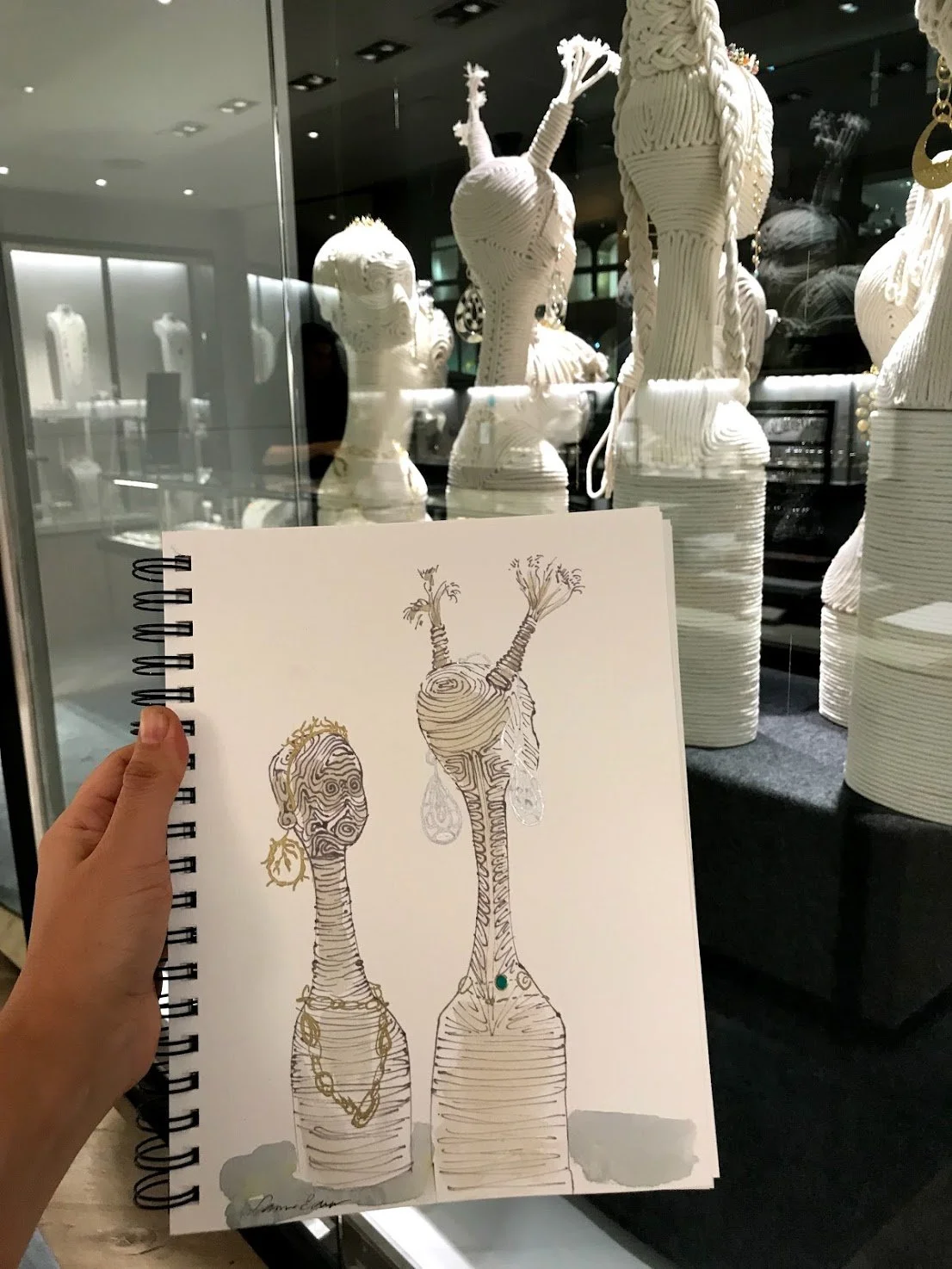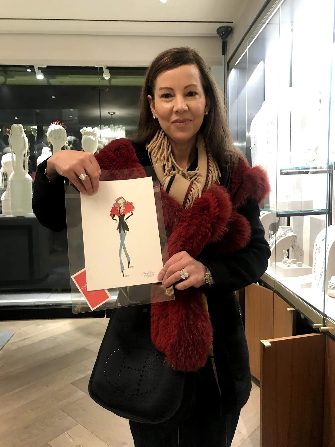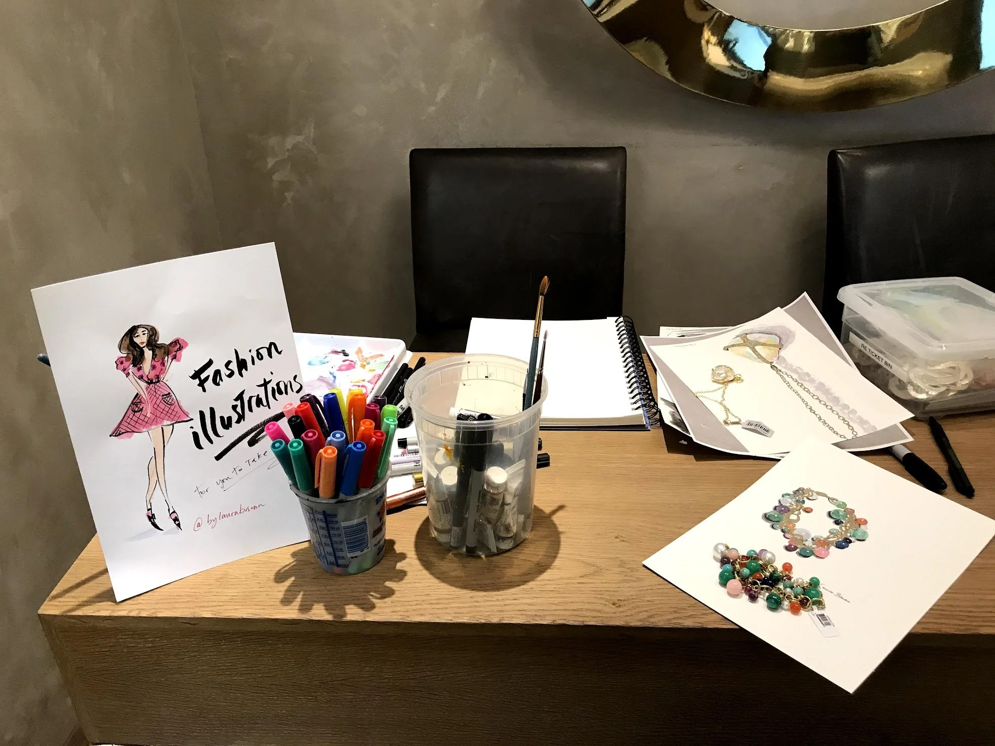 Live sketching jewelry, fashion, and product illustrations by Laura Baran at Ippolita Boutique on Madison Avenue, NYC on December 5, 12, and 19, 2019.