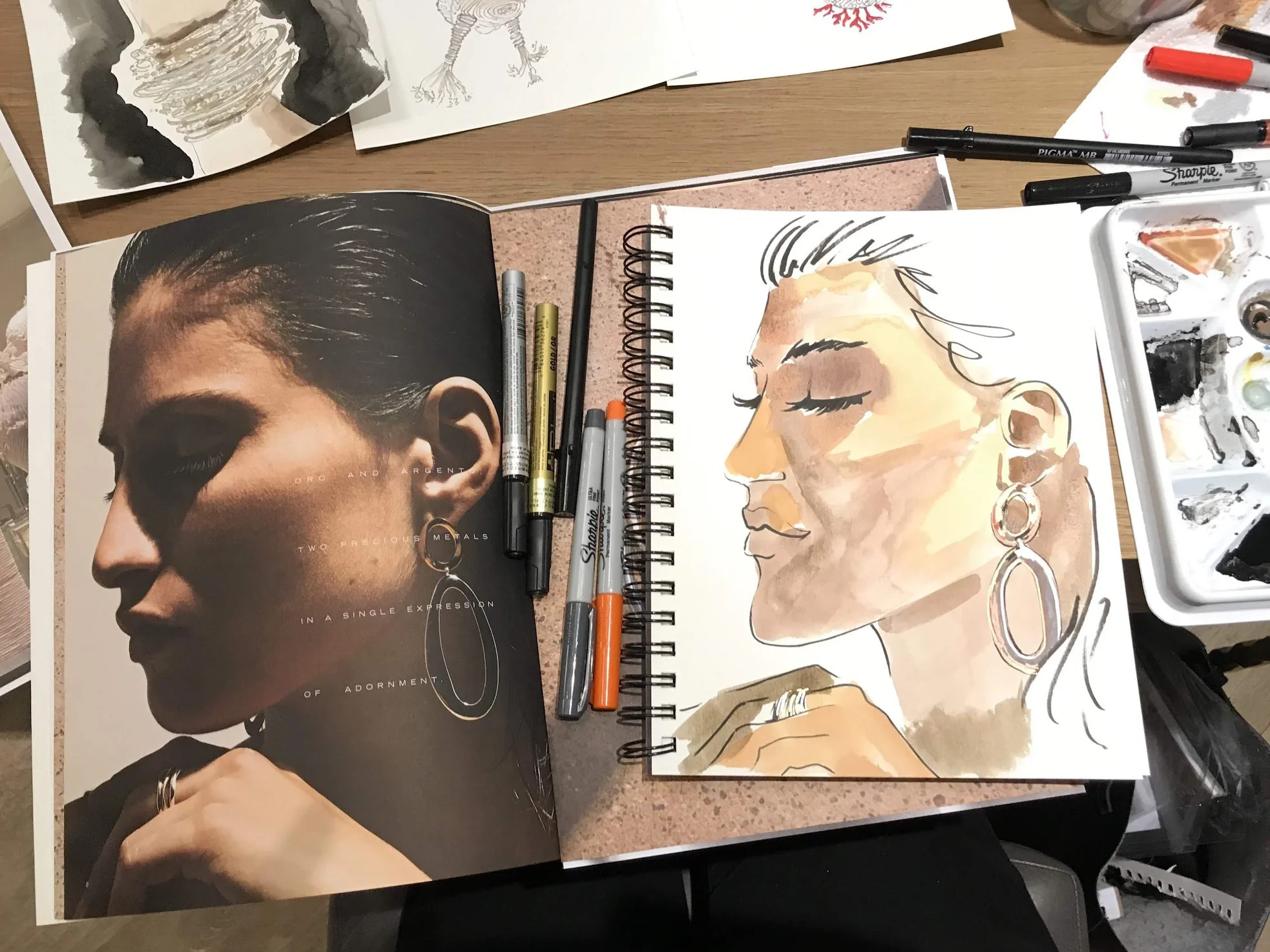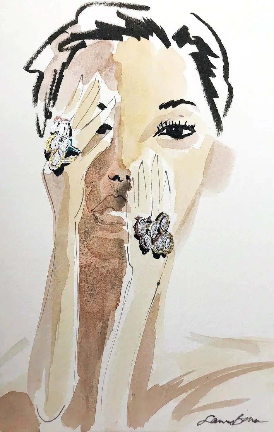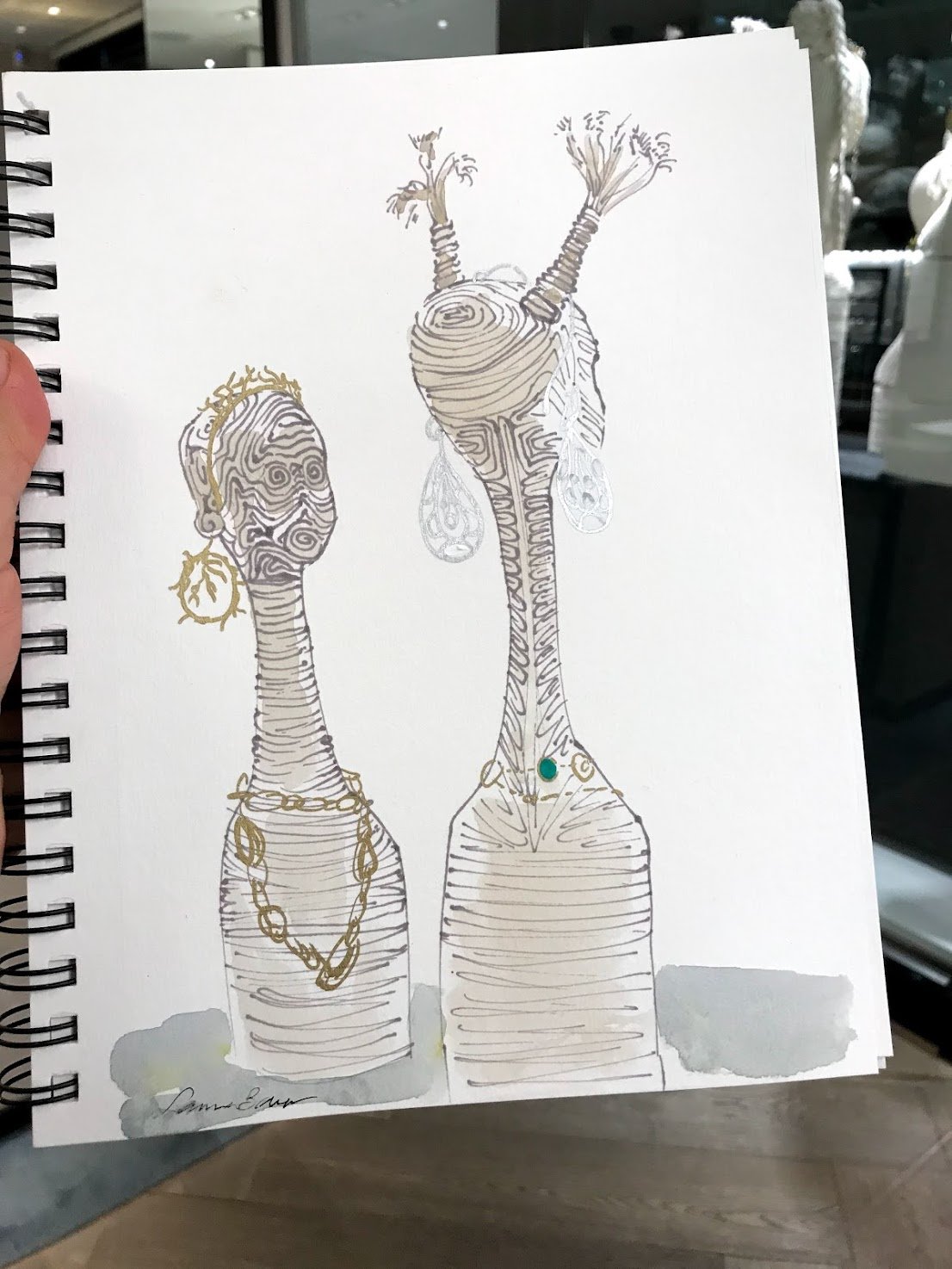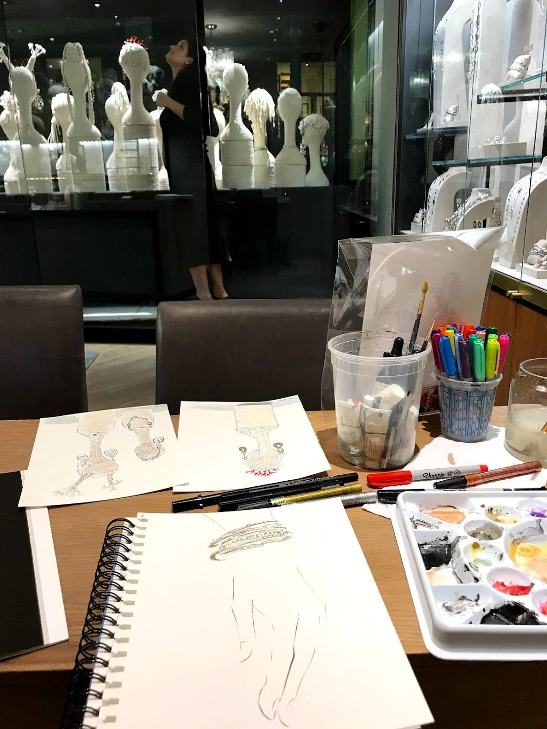 Live sketching jewelry, fashion, and product illustrations by Laura Baran at Ippolita Boutique on Madison Avenue, NYC on December 5, 12, and 19, 2019.