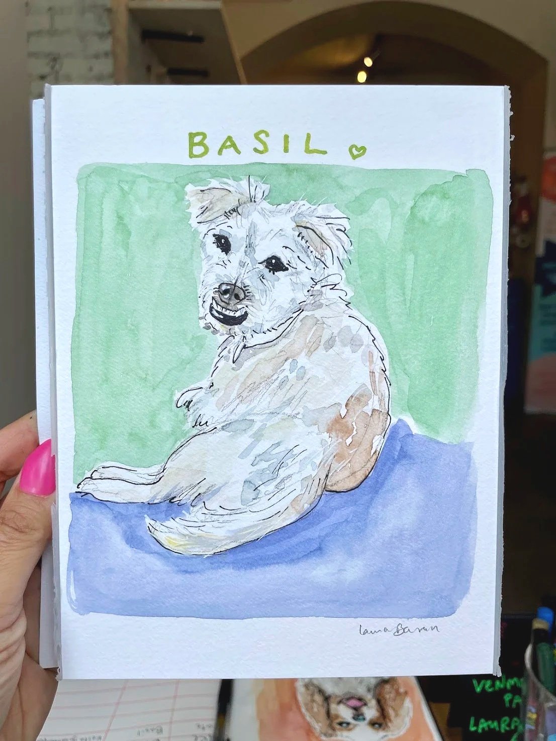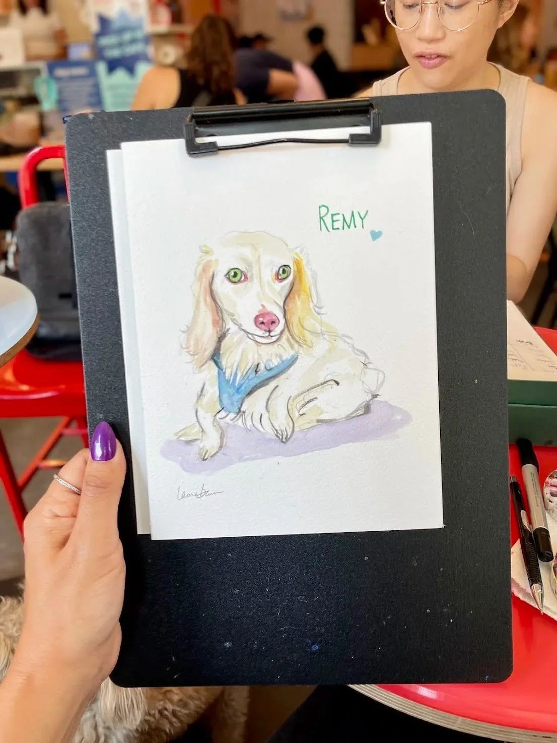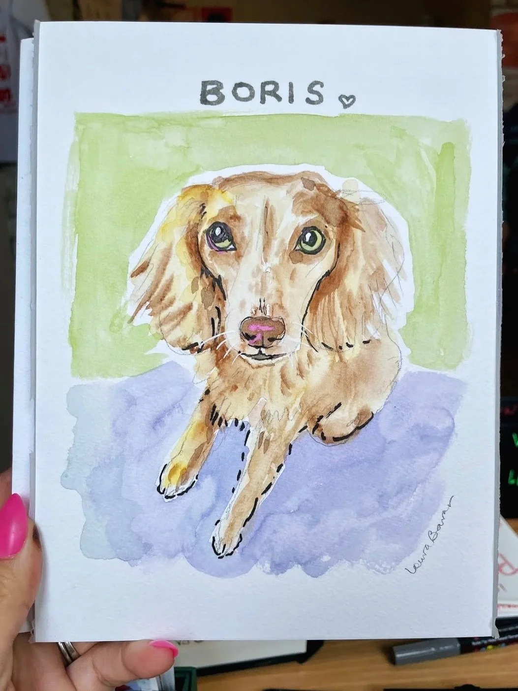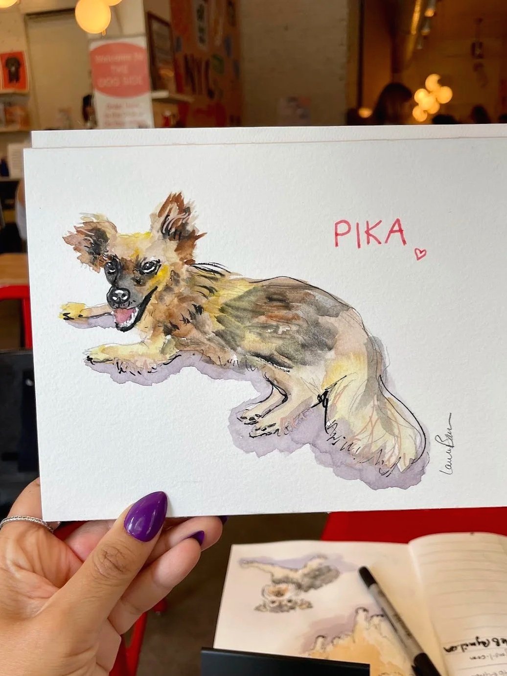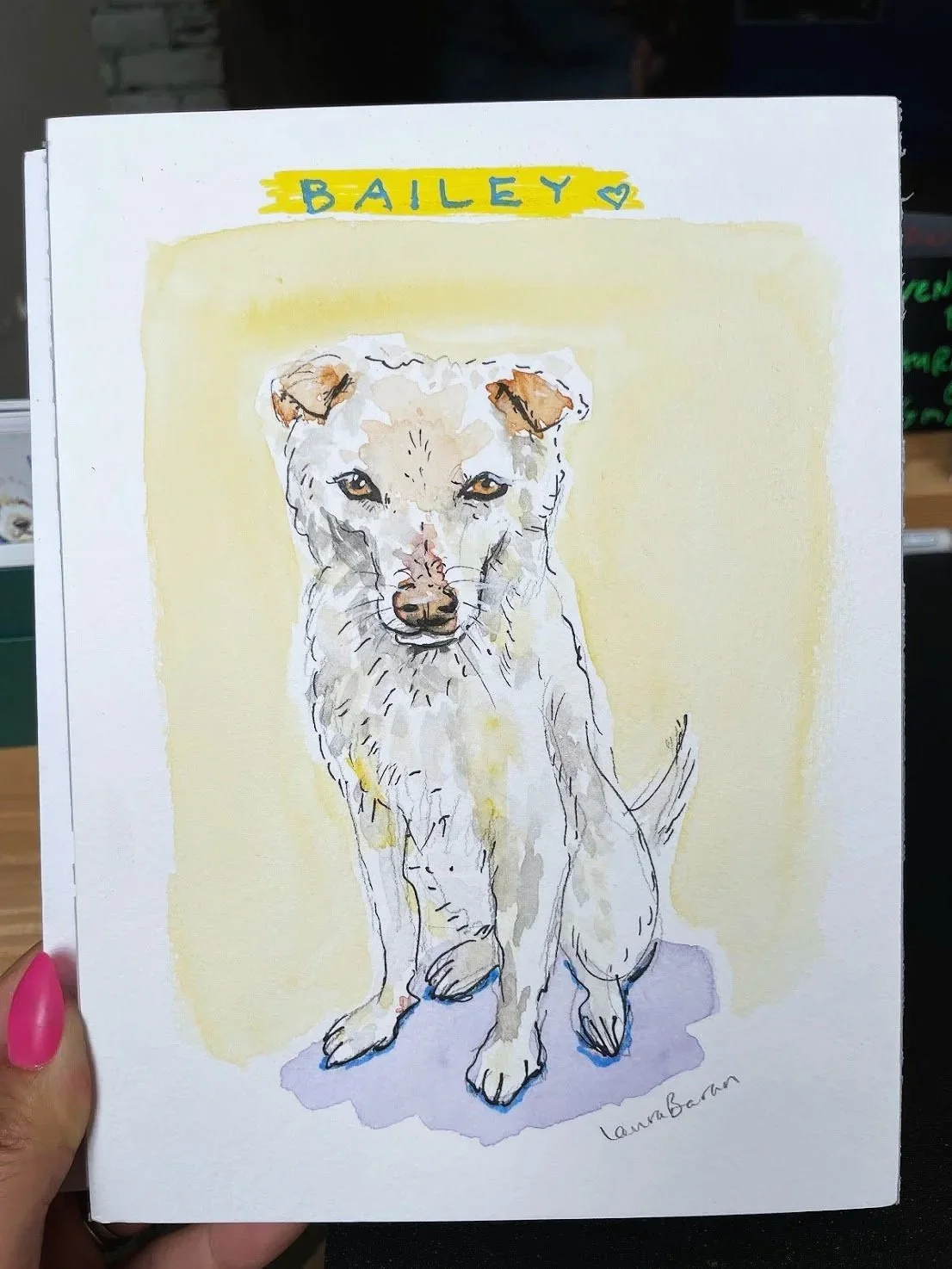 Live sketching pet portraits by Laura Baran at Boris & Horton in the East Village, NYC.