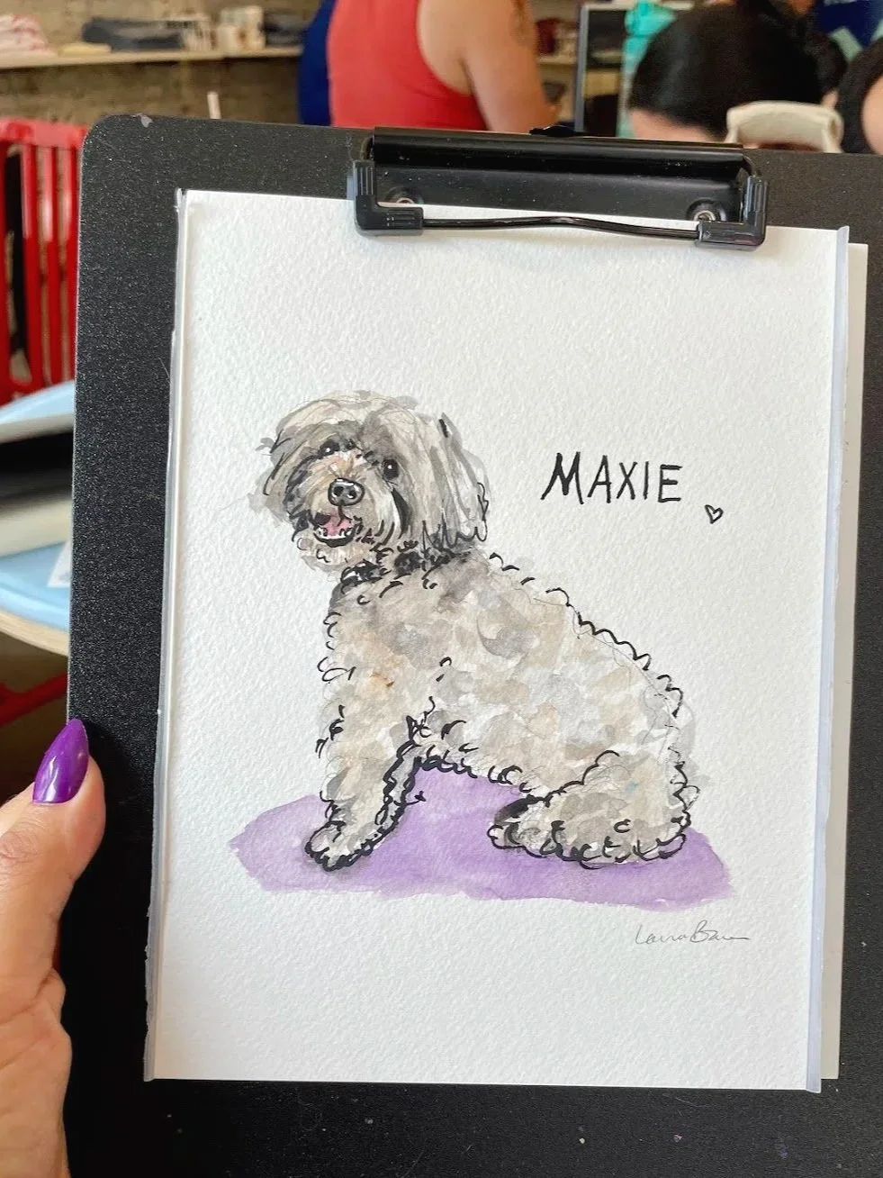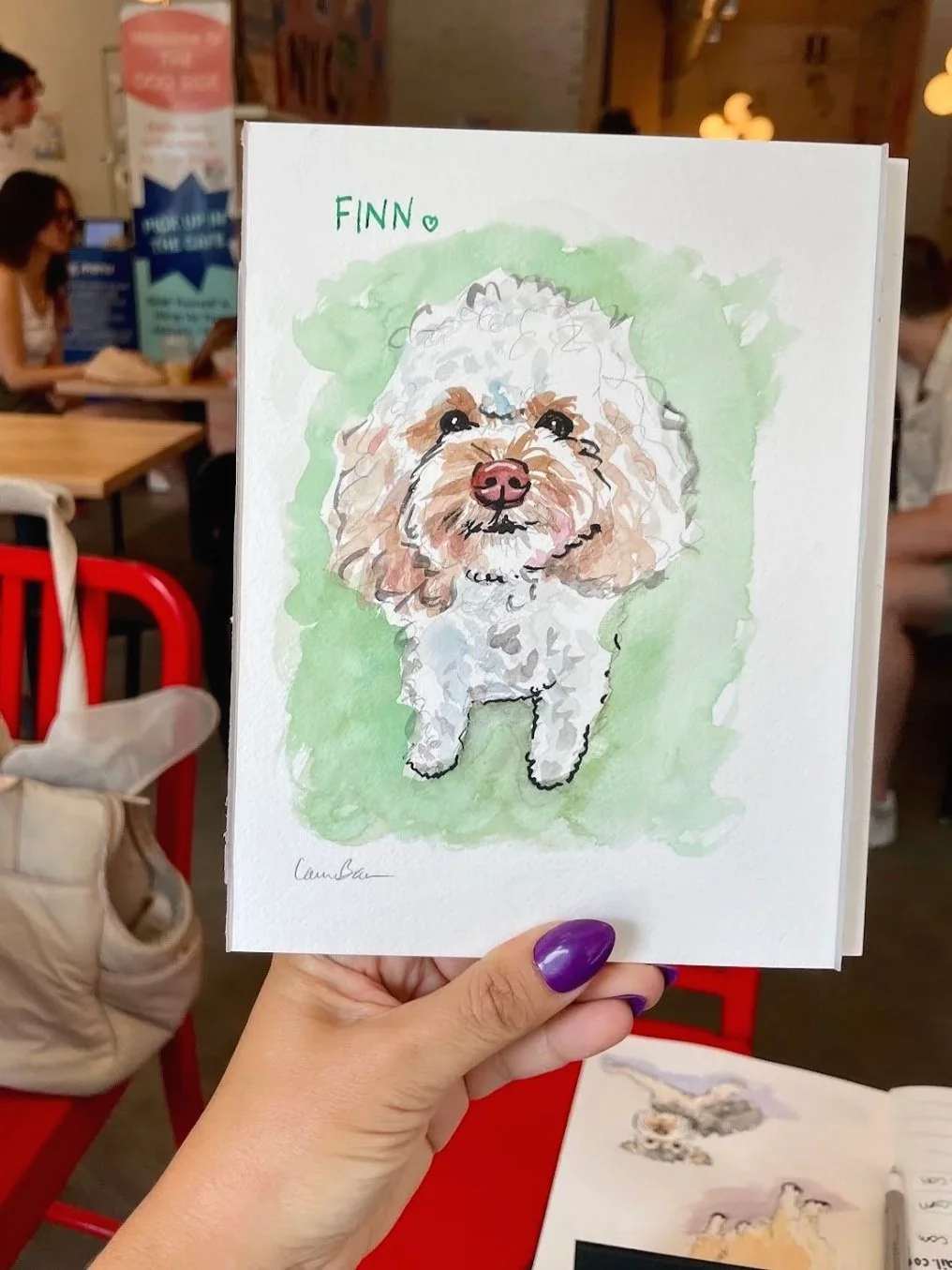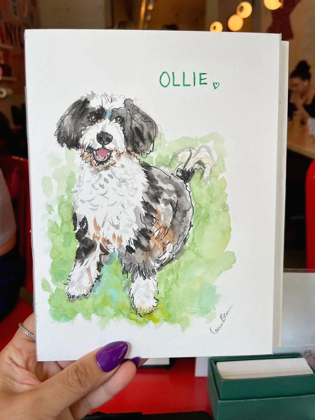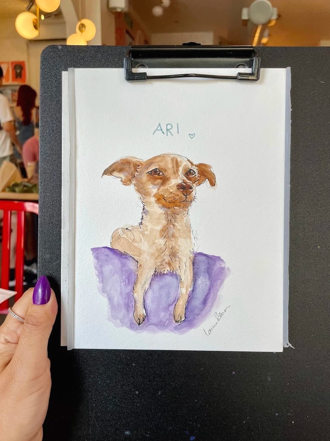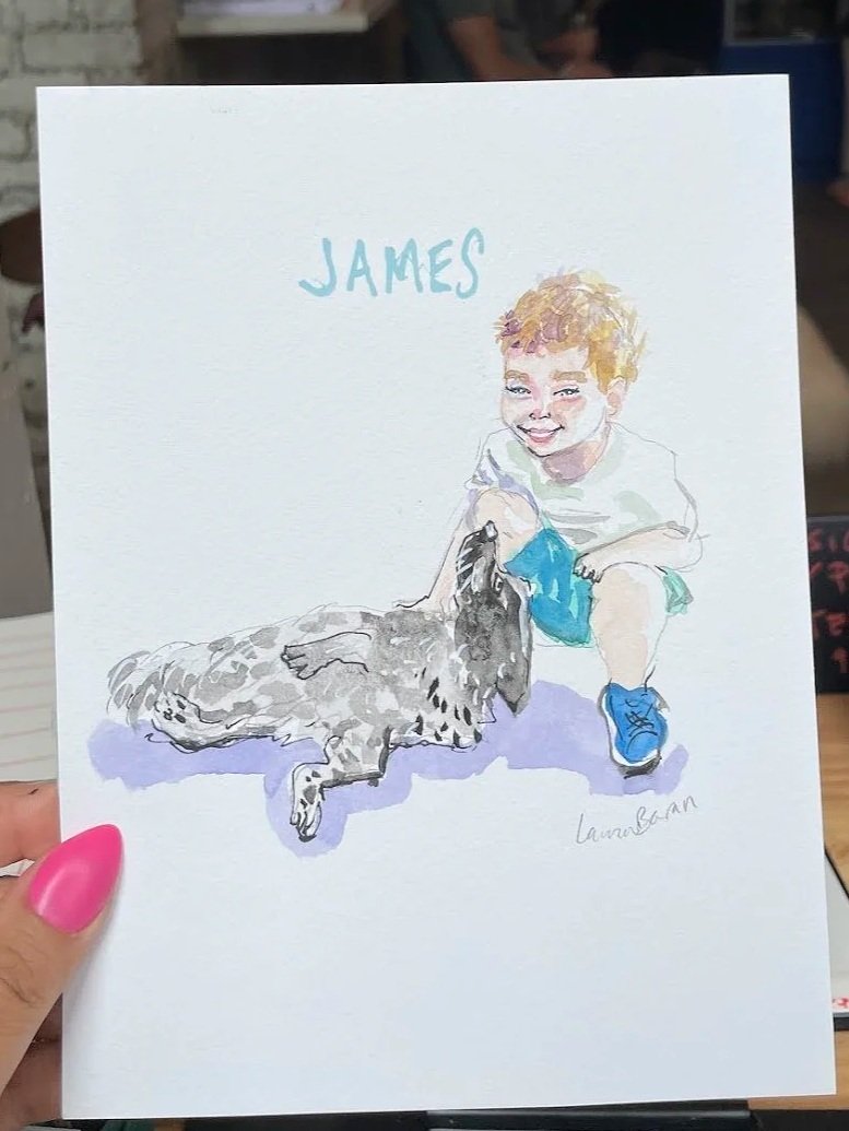Live sketching pet portraits by Laura Baran at Boris & Horton in the East Village, NYC.