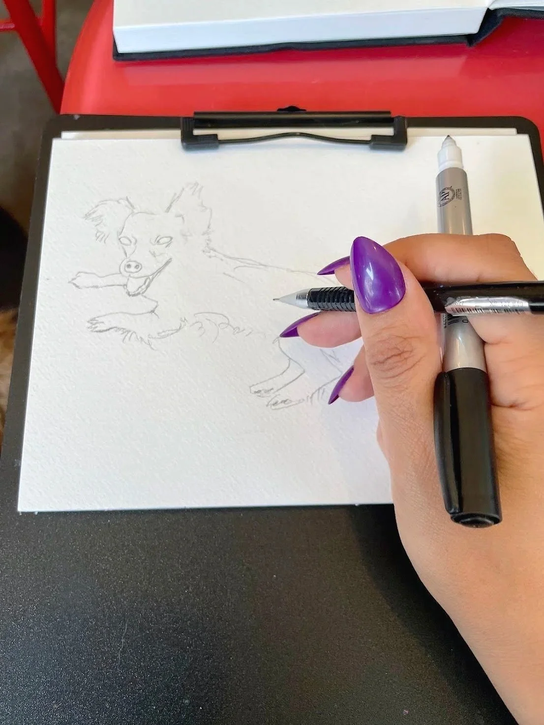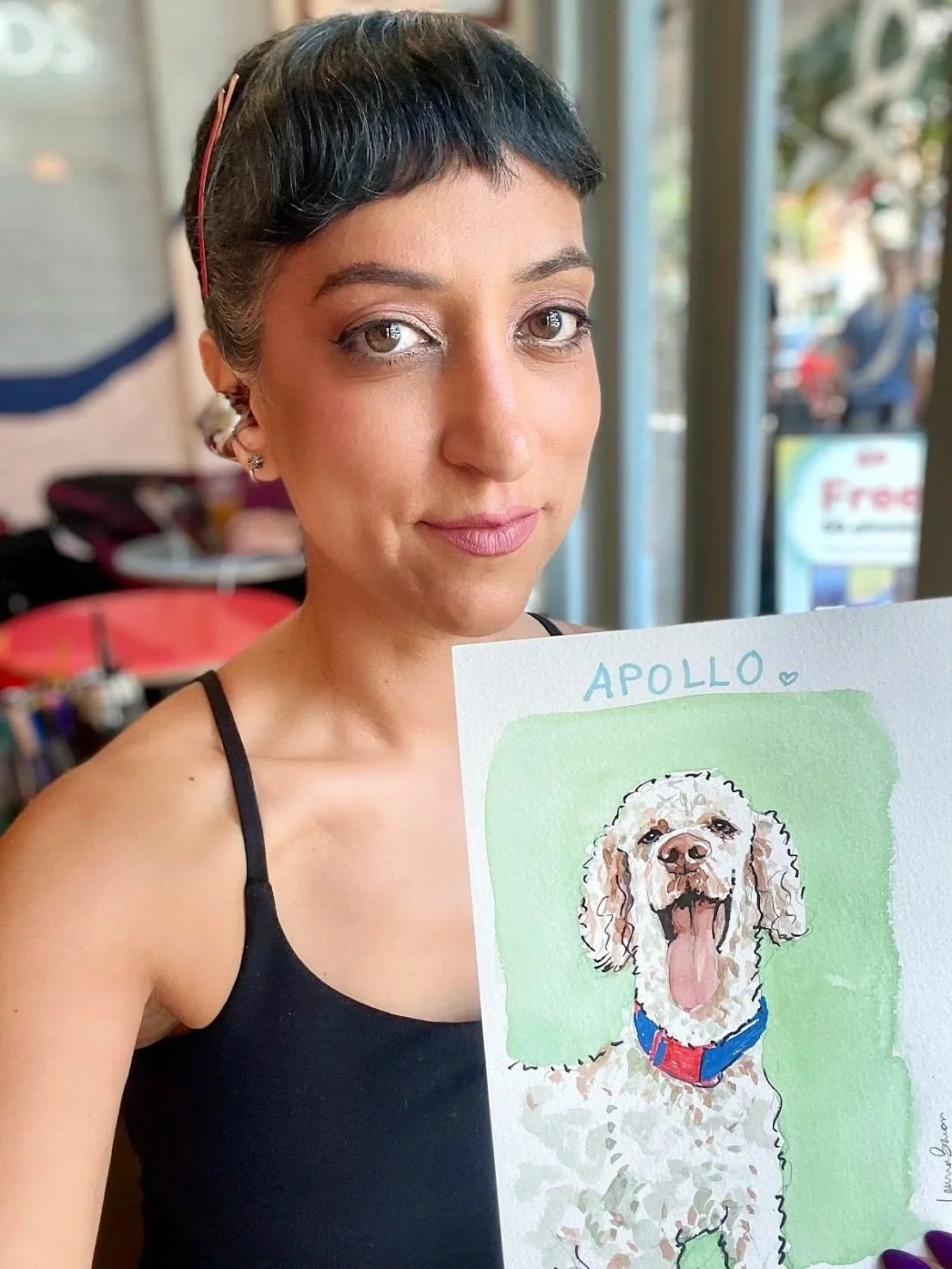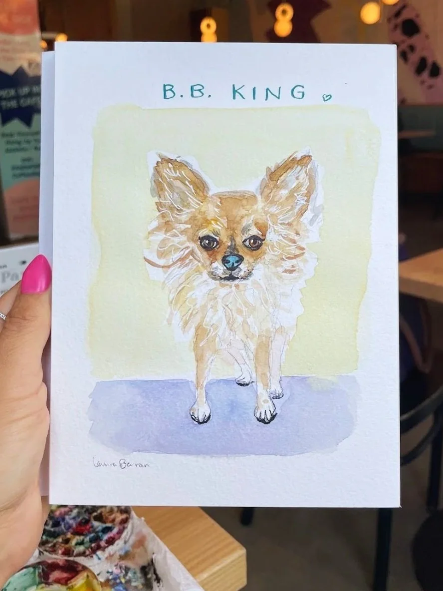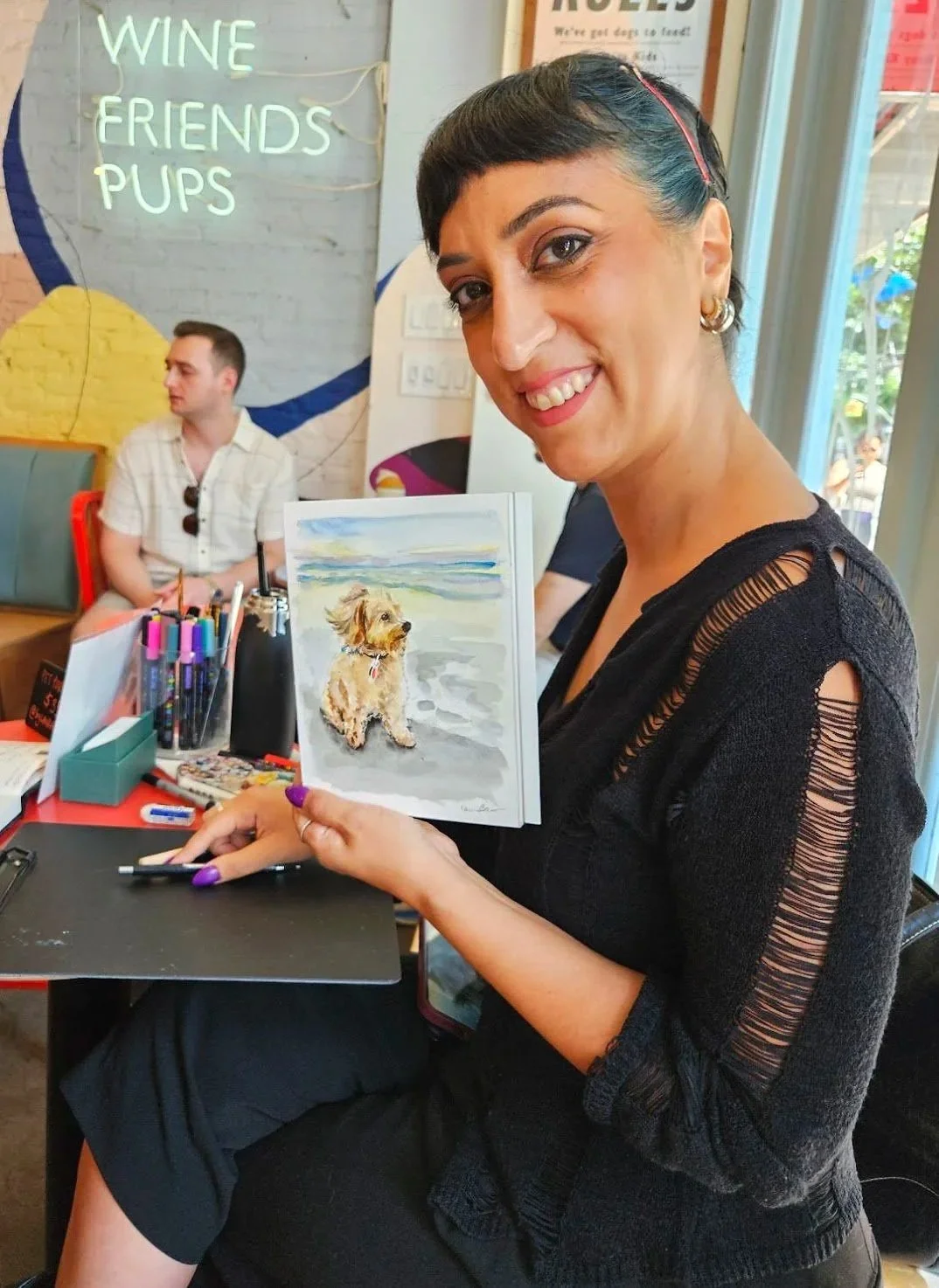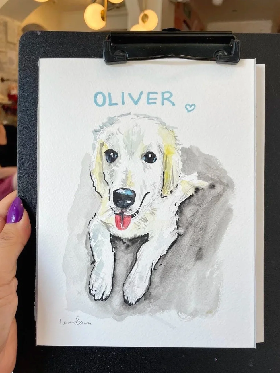 Live sketching pet portraits by Laura Baran at Boris & Horton in the East Village, NYC.