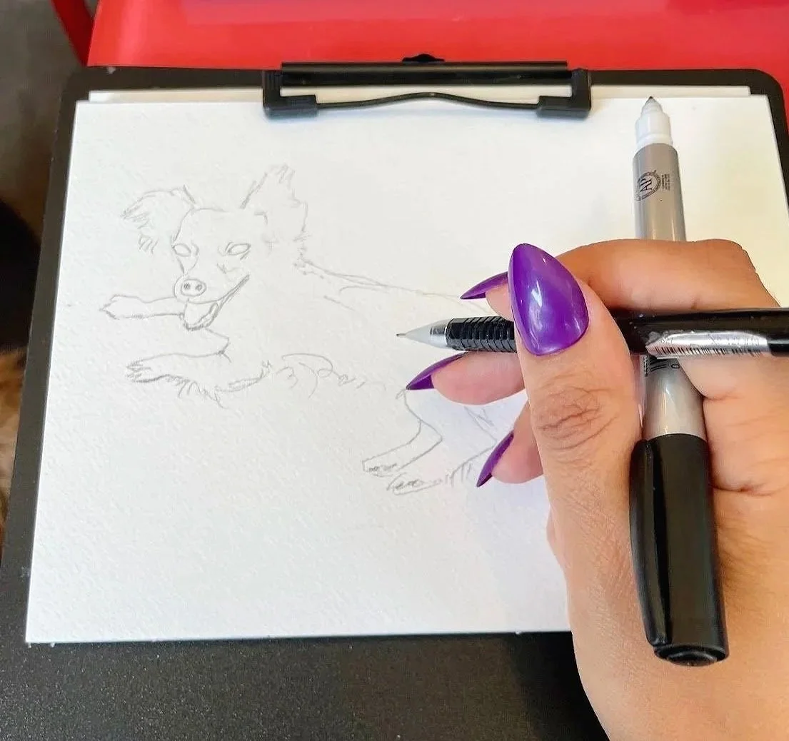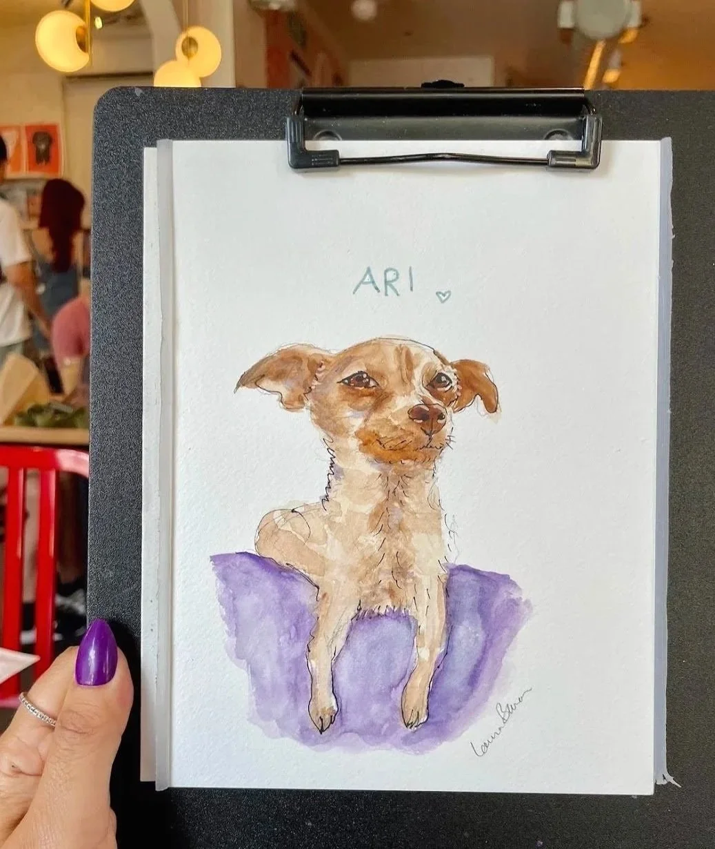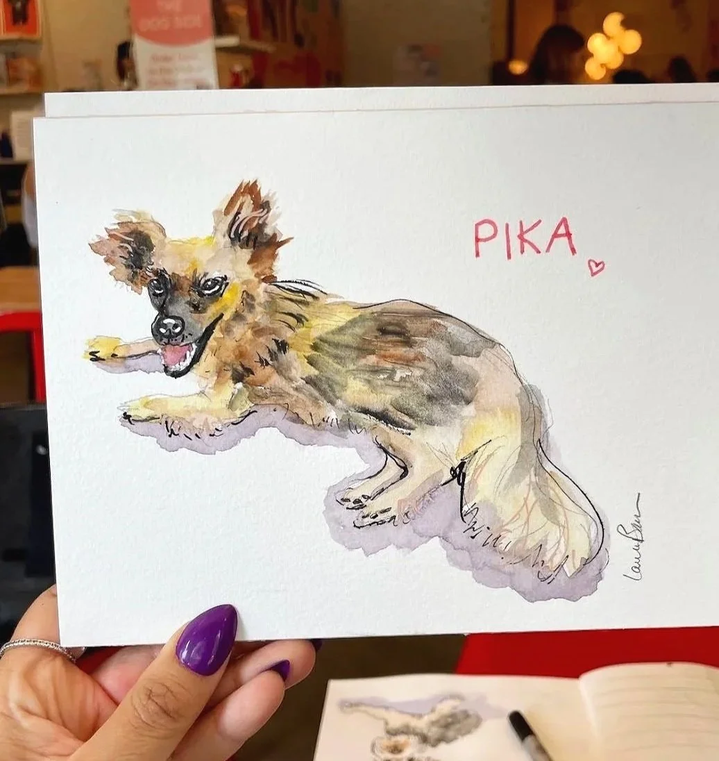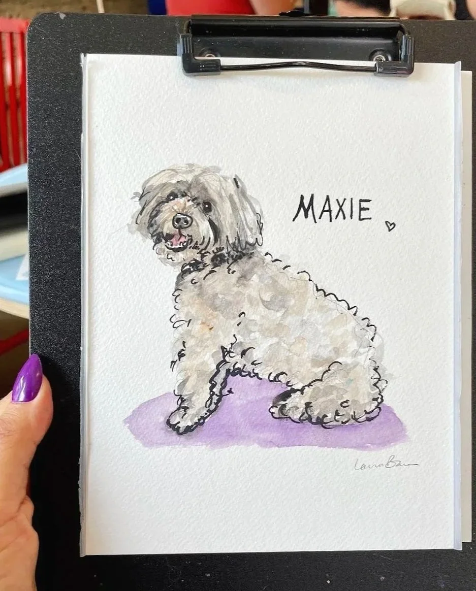Live sketching commissioned pet portraits by Laura Baran for clients at Boris & Horton in the East Village, NYC.