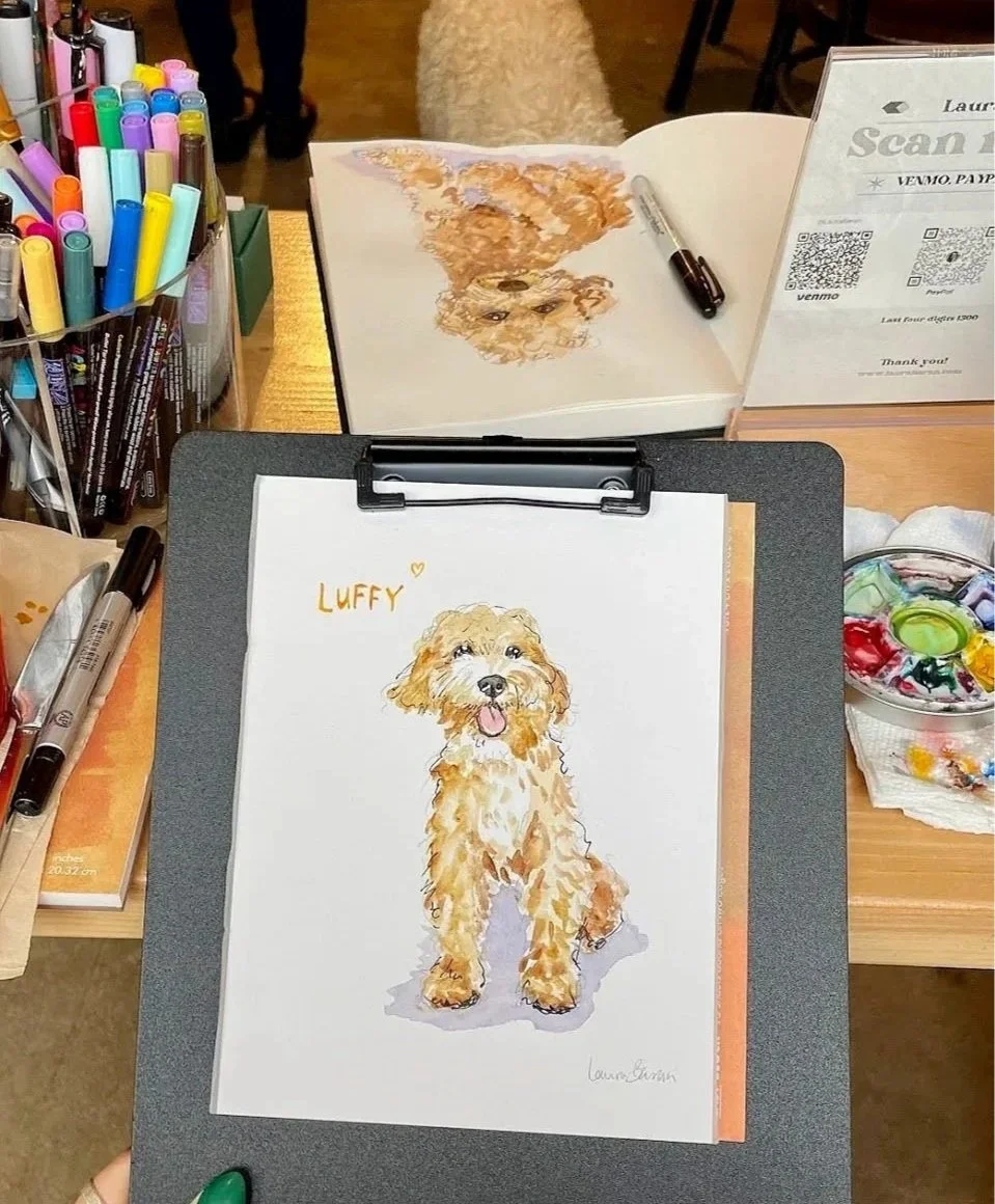Live sketching pets (mostly doodles!) by Laura Baran for guests at a Poodle Doods NYC event at Boris & Horton in the East Village.