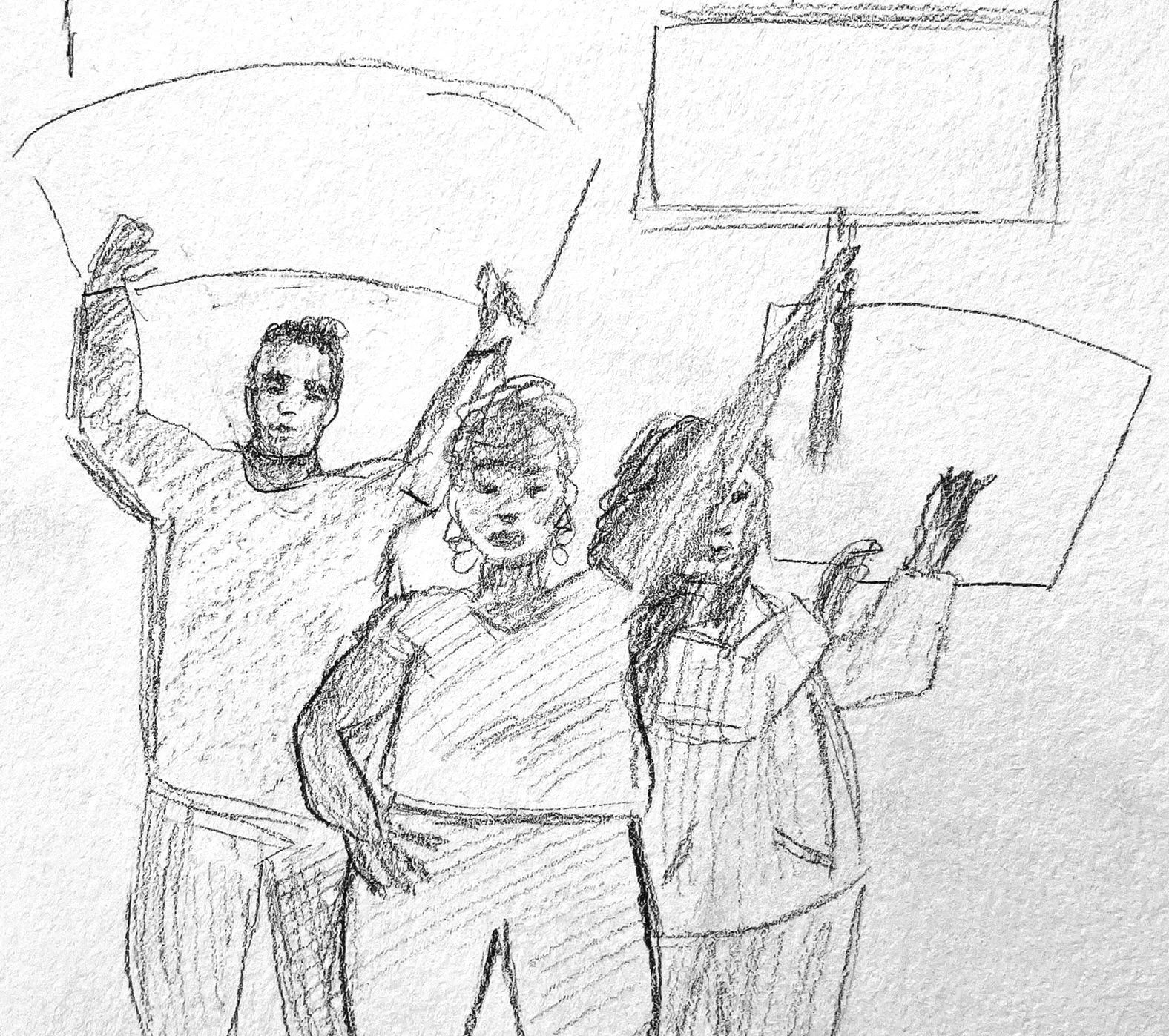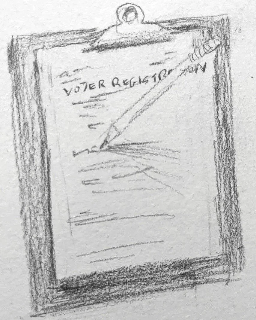 I was commissioned by the host of Sunday Civics on SiriusXM, L. Joy Williams, to create custom marketing art for promoting her podcast and civic engagement work, 2022.