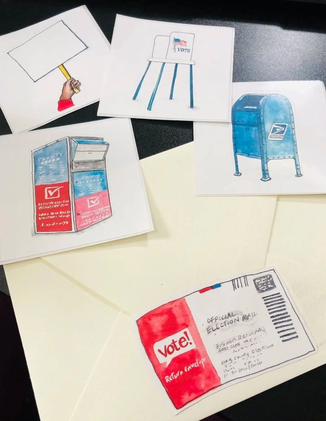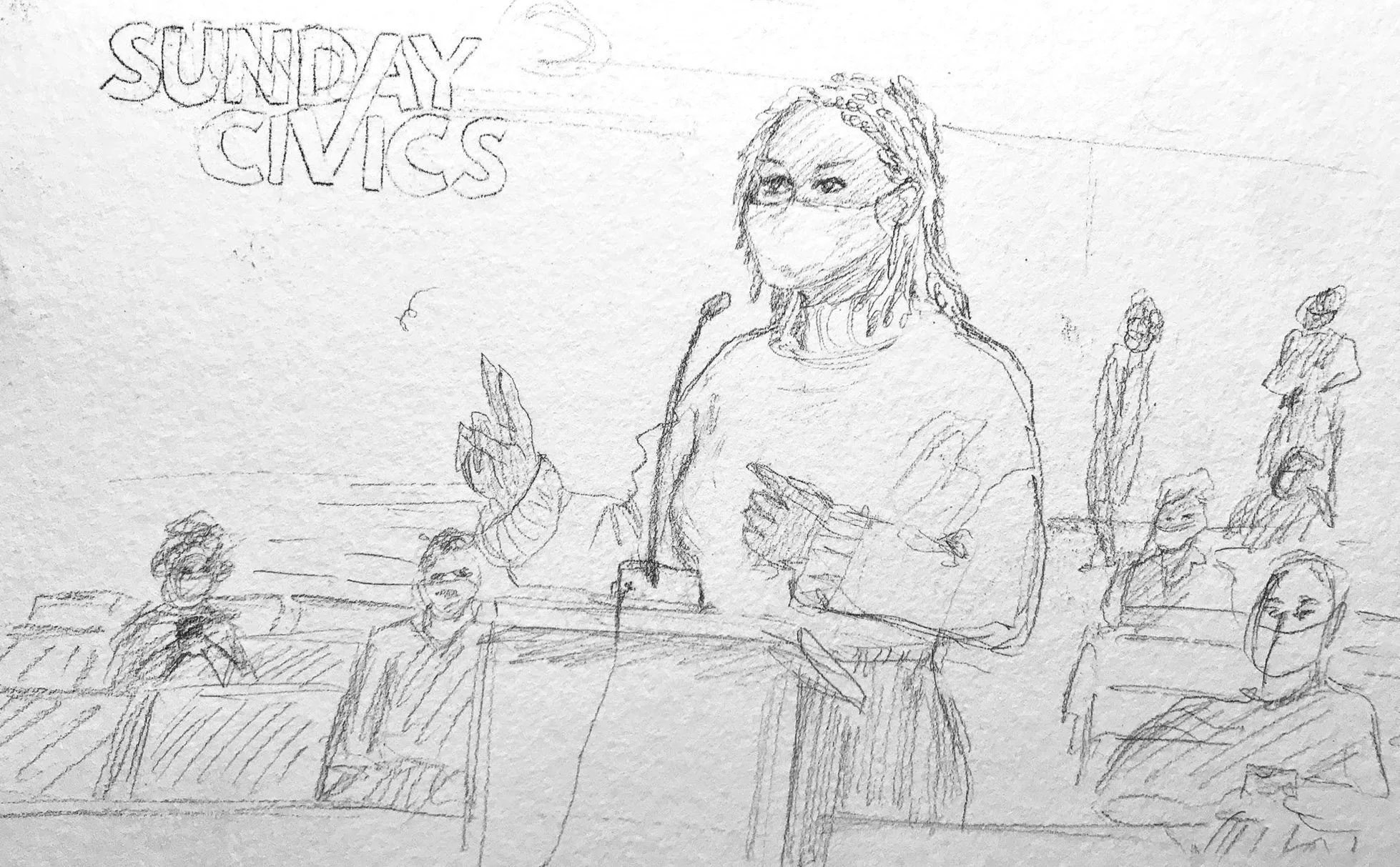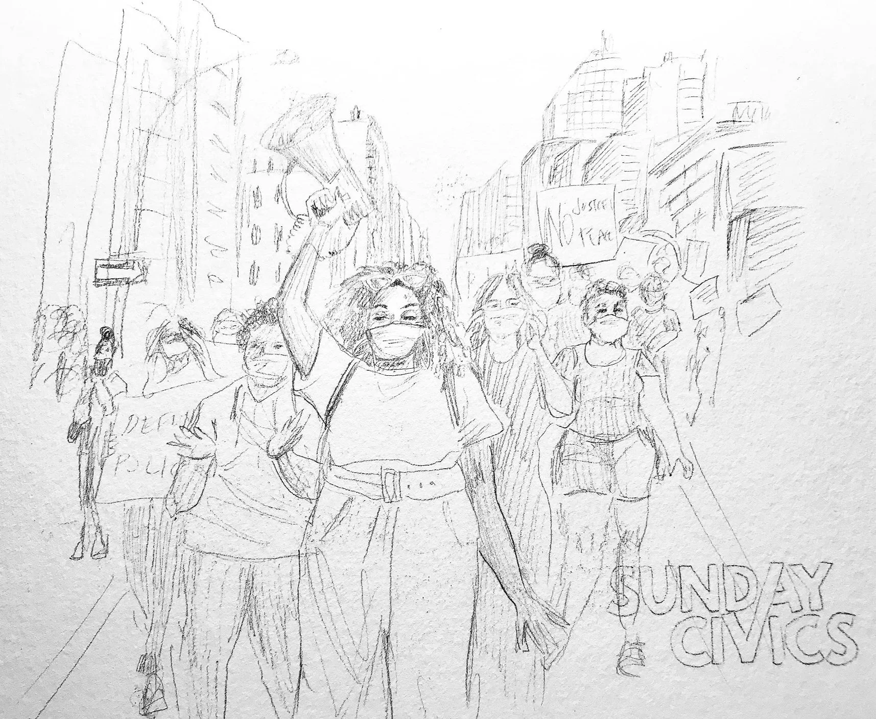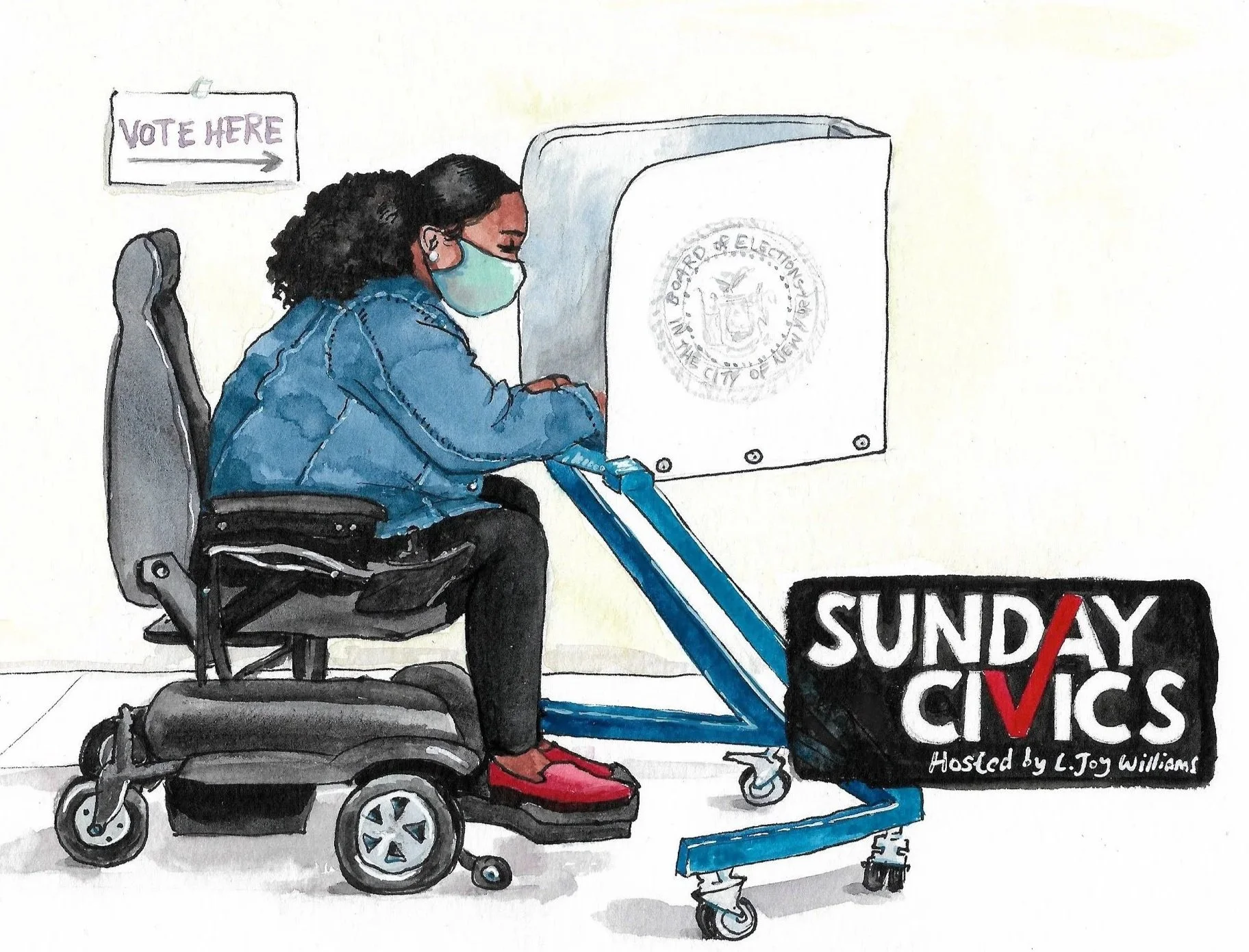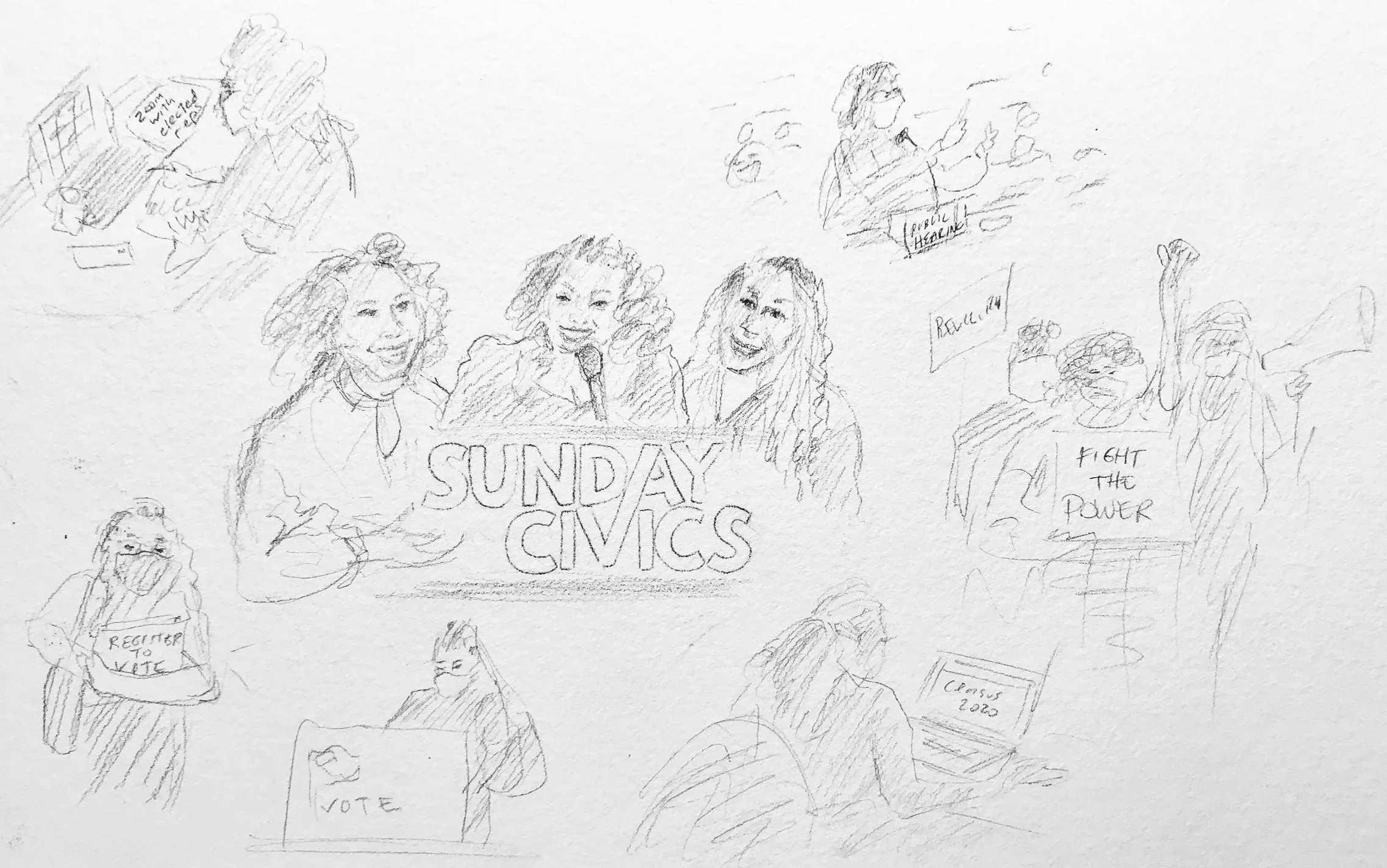 Marketing and promotional illustrations hand-painted by Laura Baran for Sunday Civics on SiriusXM, hosted by L. Joy Williams, 2020.